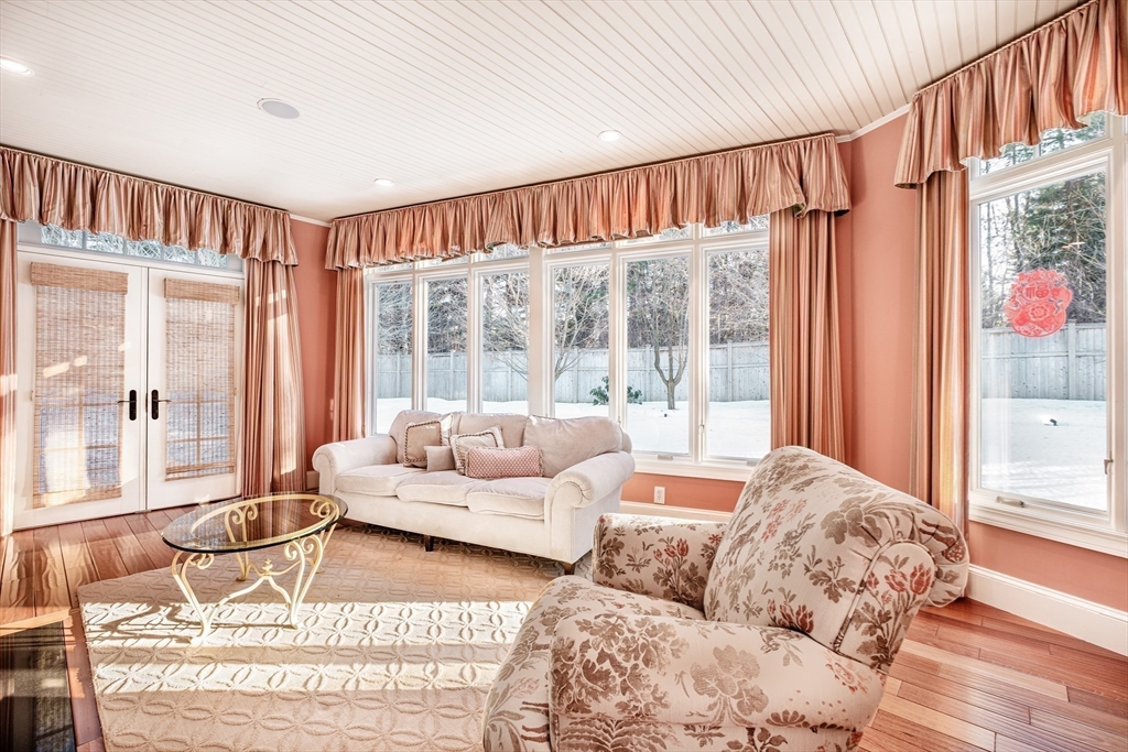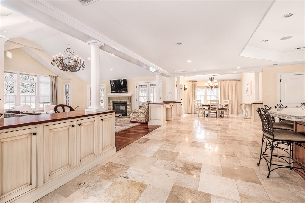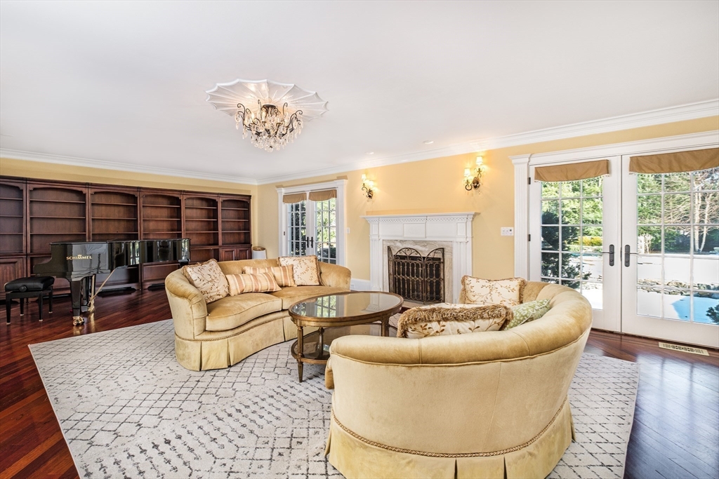Welcome to Weston. The top school district in MA. Sophisticated single-family home with over 8,000 sf of living space in Weston with large flat yard. Nearly 2 acres of land less than a half hour drive from Boston! Beautiful stone walls surround the patio, with a grill and fire pit area and swimming pool/waterfall spa. Gorgeous rooms including a stately living room w/fireplace, wood paneled study w/ fireplace and wine fridge/wet bar, and sunroom w/fireplace. The Chef's kitchen dazzles with a marble breakfast area, range, and marble counters. Impressive first floor master suite w/french Doors, fireplace, fitness room, spa/bath, home theater, two walk-in closets, and a home office.