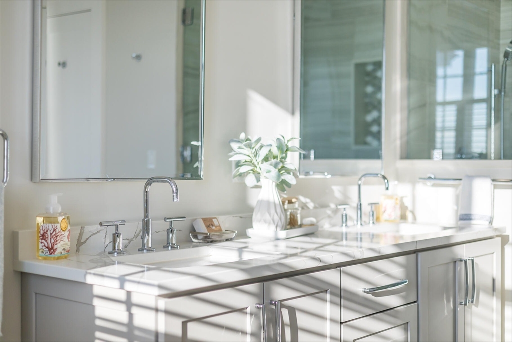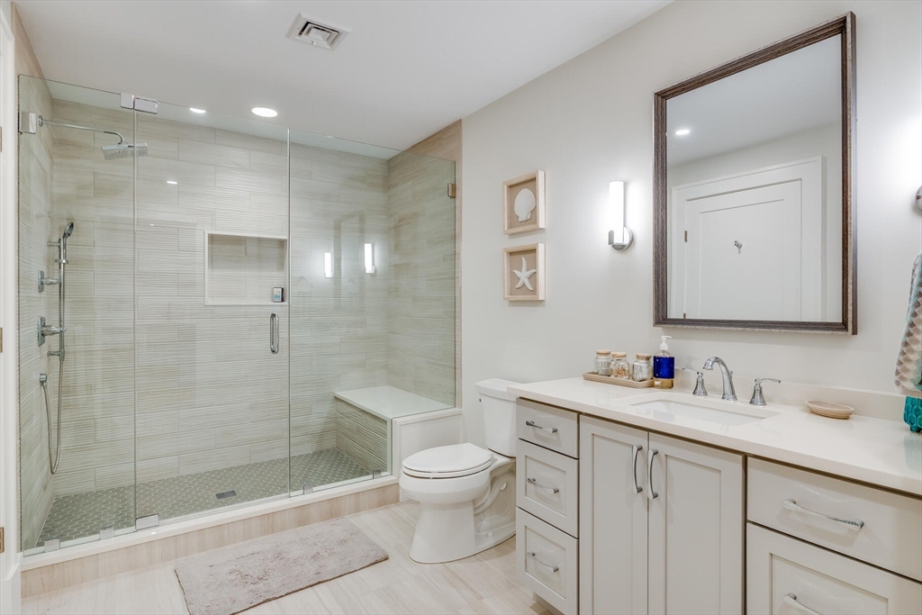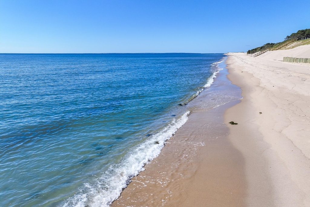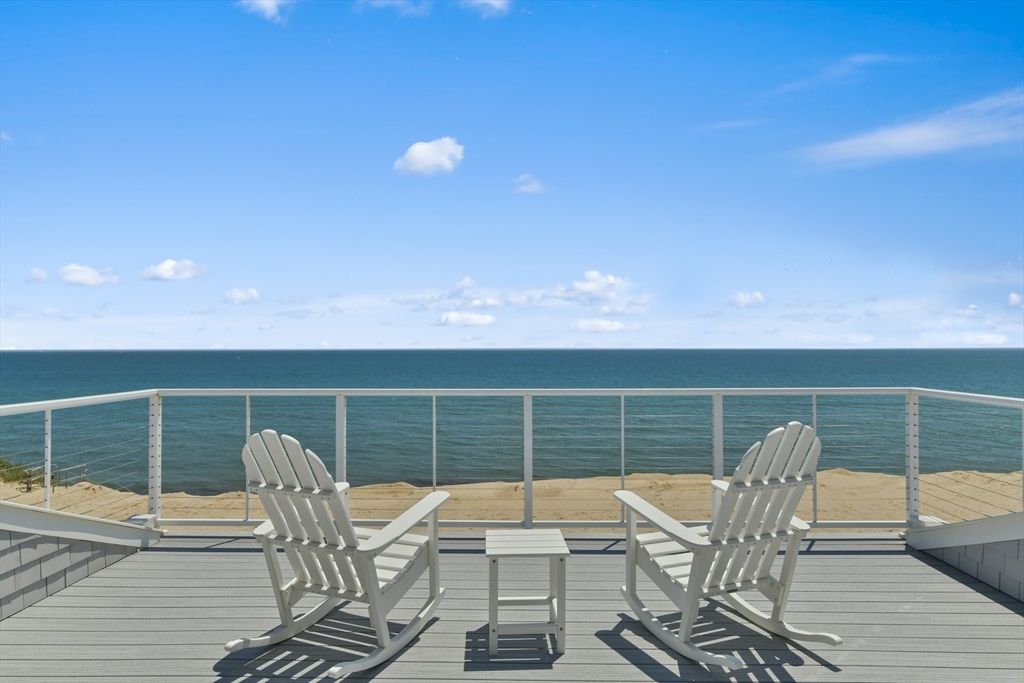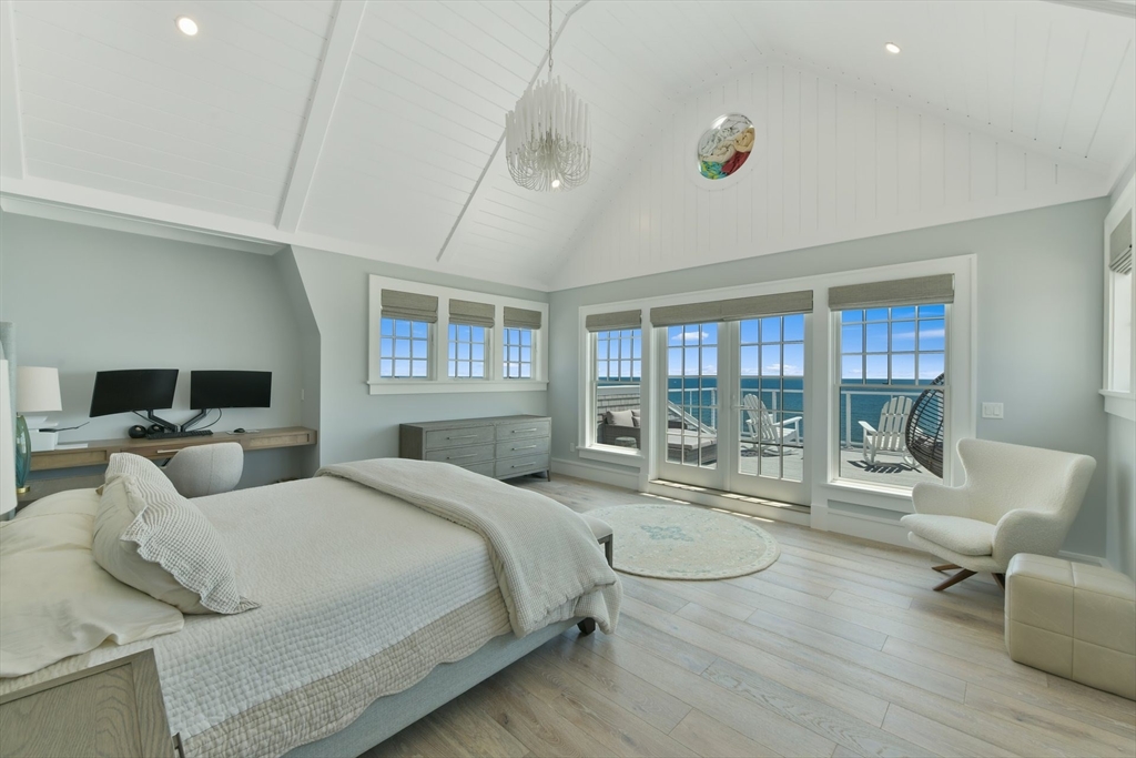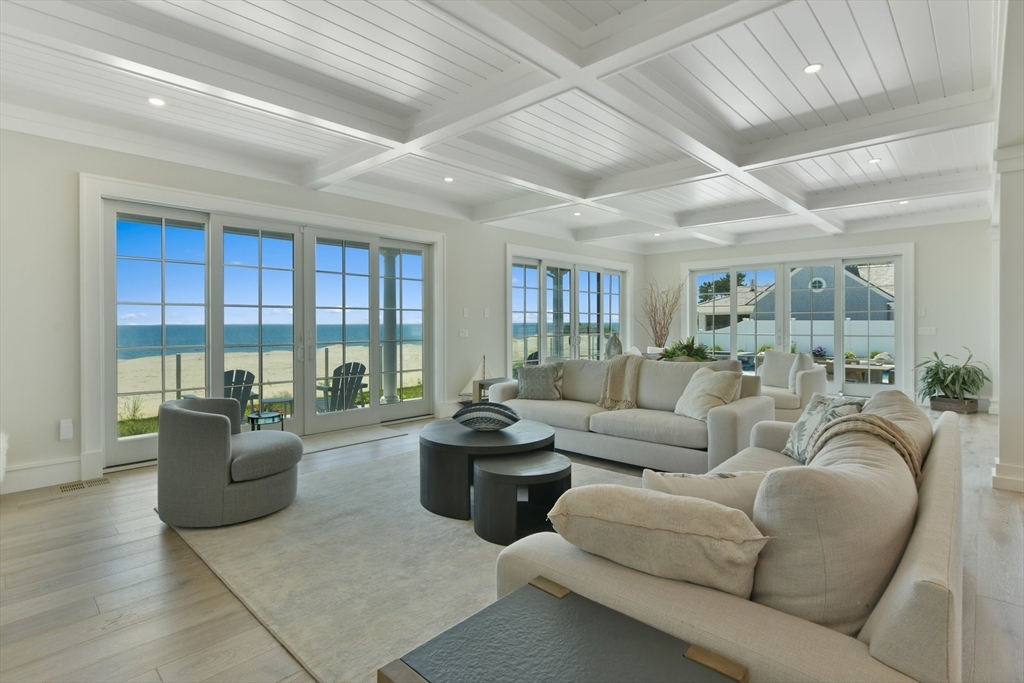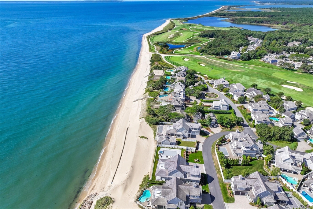 This exquisite New Seabury home blends natural beauty with modern luxury. Perched to capture stunning Nantucket Sound views with a pristine sandy beach right outside, the property offers Cape Cod living at its finest. The open layout includes a gourmet kitchen with premium appliances, a quartz island, and custom cabinetry. A sunlit living room boasts soaring ceilings, a stone fireplace, and glass doors leading to an outdoor oasis. The serene primary suite features a spa-like marble bath, walk-in closet, and private deck with ocean views. The finished lower level provides flexible space for a media room, gym, or guests. Outdoors, enjoy a heated pool, bluestone patio, and lush landscaping—perfect for entertaining or unwinding. Approved permits are in place for an 1,800 sq. ft. guest house. With breathtaking views and direct beach access, this property epitomizes Cape Cod luxury.