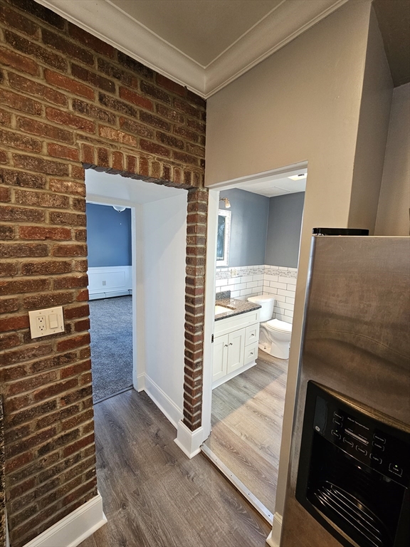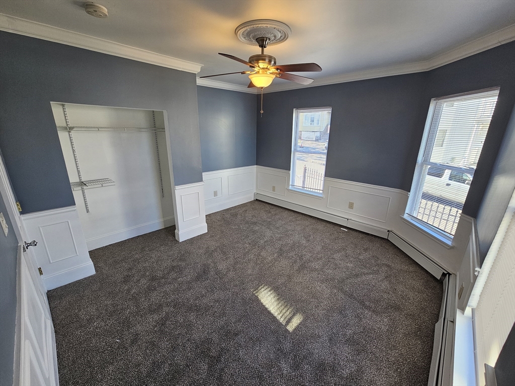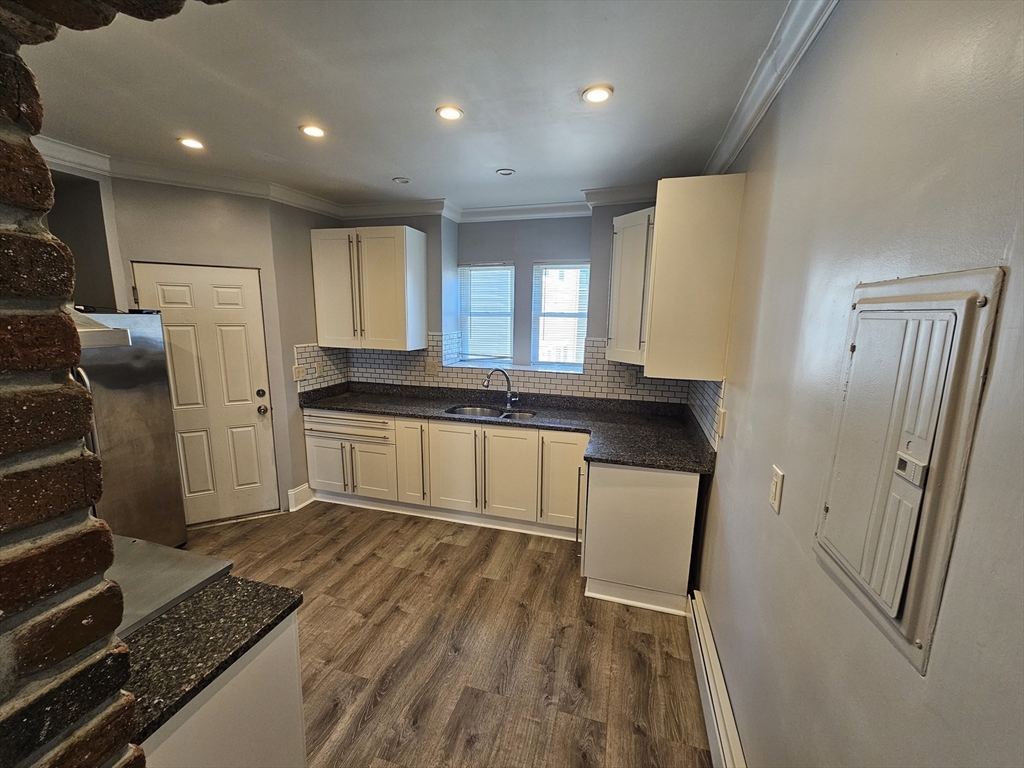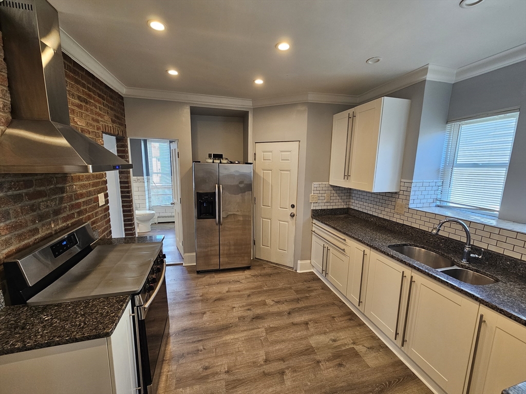 Unit 1 is a spacious 950 sq. ft. first-floor apartment with exposed brick, crown molding, and fresh paint. Features include vinyl plank flooring in living areas, carpeted bedrooms (14'x14' and 13'x13'), large closets, plus an additional hallway storage closet. The updated kitchen offers granite counters and stainless steel appliances; the bathroom includes a modern glass shower. Tenant pays electric and gas (heat/hot water). No pets, no smoking, no backyard access. One off-street parking spot included. A laundromat is less than a 5-minute walk away. Excellent location near the 15, 45, and 41 bus lines with quick access to the Red and Orange lines and I-93. Close to Downtown Boston, Fenway, Seaport, Cambridge, Longwood hospitals, major universities, and South Bay shopping. Minimum 12-month lease. LL Gifting tenants first-year renters' insurance is required, and gifting a Blink doorbell.
