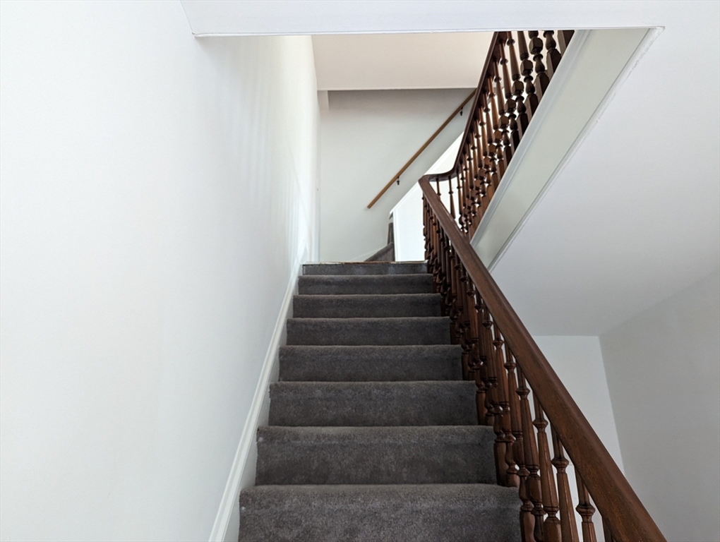 Minutes to downtown Newburyport and the waterfront. This two bedroom, two bath unit is on the second and third floor of a three unit building Offering pine floors throughout with a very spacious living room on the main level, with the kitchen that leads to a private deck overlooking the back yard. Washer and dryer in the unit and two car off street parking.