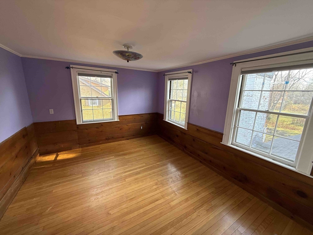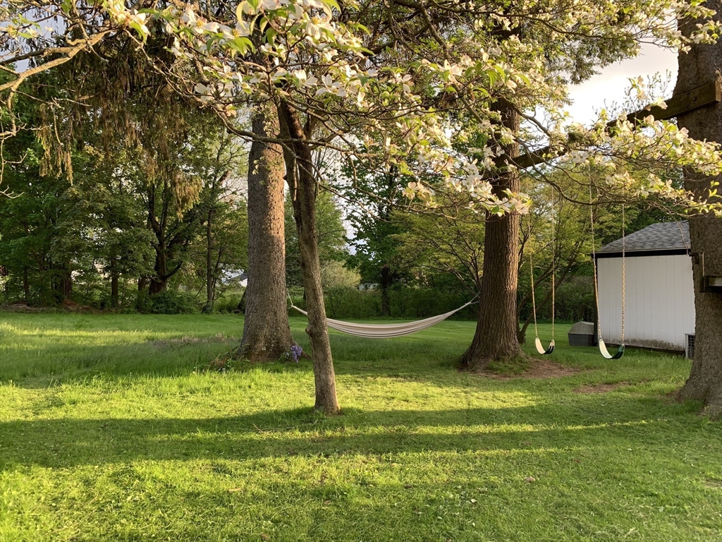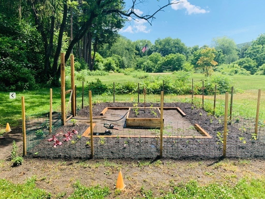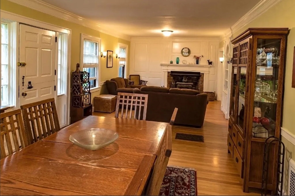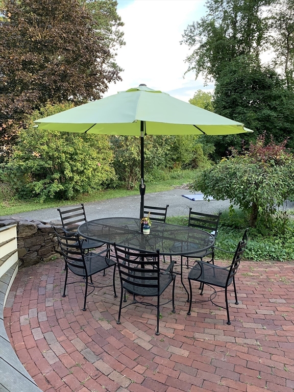 In-town, classic Bill Gass Colonial built for his own family on a sweet tree-lined residential street close to town. Here you'll find a circular floor plan and large, versatile LR, high ceilings, crown moulding & updated eat-in kitchen w/ SS appliances. A spacious, heated Sunroom w/ sliders leads to an expansive deck, stone sidewalls, brick patio & a private, deep lot w/ mature trees and chemical free lawn & gardens. Upstairs are 3 spacious, light filled bedrooms & Bath. The LR wood stove easily heats the home although there are multiple heat sources to draw from-if so desired. Hardwood floors throughout. The Great Room addition w/ massive fireplace is the actual Potter Schoolhouse; dismantled & moved from Enfield, MA prior to the flooding for the Quabbin Reservoir. It offers beamed ceilings & views of Mt Sugarloaf. Nearby is the beautiful Tilton Library, Restaurants, Shopping, Recreation, 5 College area, private schools & access to major crossroads.