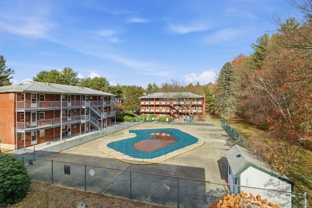 Andover’s Colonial Drive Condominium-This south facing, 1 bedroom, sun filled corner unit, is located on top-floor and is in pristine condition. Offering low-maintenance living in a highly convenient location, this updated unit features a refreshed bath, an open living/dining area with fresh paint, and a spacious bedroom with ample closet space — all enhanced by Pergo flooring. The fully applianced kitchen with tile flooring offers lots of cabinet space. 2 newer wall A/C plus on site laundry facility. Enjoy easy access to downtown Andover, Harold Parker State Forest, commuter routes, and the desirable South/Doherty School district. Community amenities include an in-ground swimming pool, clubhouse, tennis and basketball courts, deeded parking, and extra basement storage. The monthly condo fee covers heat, hot water, gas, water, sewer, landscaping, snow removal, exterior maintenance, and master insurance. An excellent buying opportunity in a well-maintained condominium community.