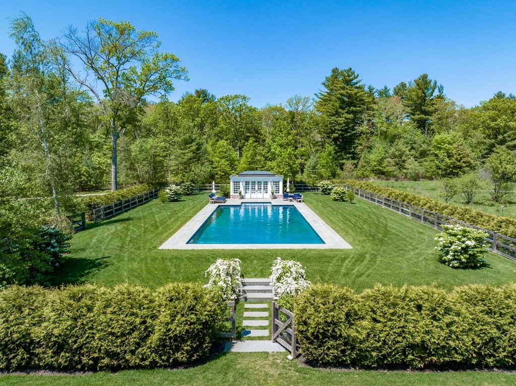Set at the end of a long winding drive, this remarkable 16+ acre estate abuts more than 100 acres of conservation land, creating a rare sense of privacy and natural beauty. Suited for formal entertaining, intimate gatherings, and gracious family living, it includes a welcoming main entrance hall, a wonderful living room with an attached library, a spacious formal dining room with adjoining butler’s pantry, and a stunning chef’s kitchen that overlooks a fireplaced family room and a covered patio. There are 7 bedrooms highlighted by a stunning primary suite, as well as two offices, a playroom, an exercise room, and an attached, heated three-car garage. Outdoor amenities include a heated pool with a well-appointed pool house, a sport court, a stream-fed pond, and a barn-garage with a greenhouse and two horse stalls, along with a charming two-bedroom cottage. This exceptional property offers access to excellent public and private schools, Legacy Place, the train, and Boston via Rte. 95/128