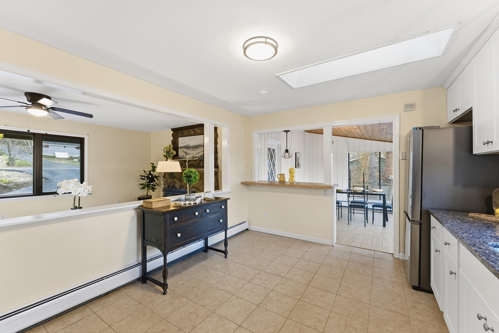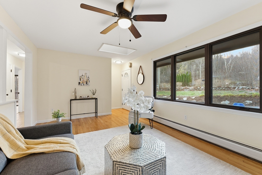 Hurry to view this wonderful 3 bedroom, move in ready home, The home has hardwood throughout with newer kitchen and baths. The home has an open floor plan. Sit by the fireplace in the spacious living room The new kitchen leads to a dining room with vaulted pine ceilings and a view of your 4 acres of woodland. The sliders from the deck lead to an oversized rear deck. The lower level is a walk out with a family room, a bedroom and a full bath. It could easily be a fabulous in-law or teenager suite. A one car attached garage, a new driveway and fresh landscaping. This is a fabulous home in Russel and only 10 minutes to Westfield University and Stanley Park.