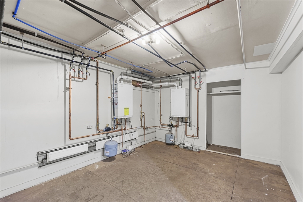 Spacious 2 family flat with great parking area and fabulous location, in proximity to bank, stores, restaurants and more downtown attractions! This home was recently renovated with improvements that include brand new natural gas high efficiency heating systems, painting and more! There are vinyl replacement windows throughout the building, and city water and sewer. The large upstairs features 3 bedrooms, laundry room living room and two bathrooms. In addition, it has an enclosed back porch and deck, plus great storage space in walk-up attic.The first floor can be used in different ways, according to your needs, as it has 2 bedrooms, 2 full baths and 2 kitchens. Currently there is a door dividing it into two units. This 1st floor apartment also offers laundry hookups and a great sunroom. The partially finished basement is an amazing space, with 2 walk-out egresses, an additional bath with shower, kitchenette, and bonus room.Lead compliance certificates for both units will be provided