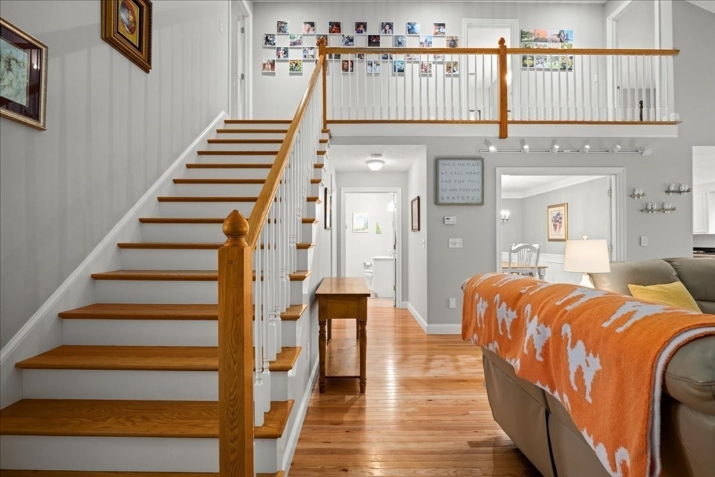 Welcome to effortless living at Brierly Pond Village, a desirable 55+ active adult community! This spacious townhouse offers comfort, convenience, and style—paired with true low-maintenance living.Step inside to a bright open floor plan perfect for both everyday living and entertaining. The large kitchen features stainless steel appliances and ample counter space, flowing seamlessly into the adjacent living and dining areas. The formal dining room impresses with French doors, wainscoting, and crown molding. The fireplaced cathedral living room is a standout, offering abundant natural light, a dramatic vaulted ceiling, and an upstairs balcony overlook. A slider leads to the private deck, ideal for relaxing outdoors. The second level includes a generous en-suite master bedroom, as well as an additional bedroom and full bathroom. Additional highlights include a 2-car garage and a prime location with convenient highway access to all major routes—perfect for easy commuting