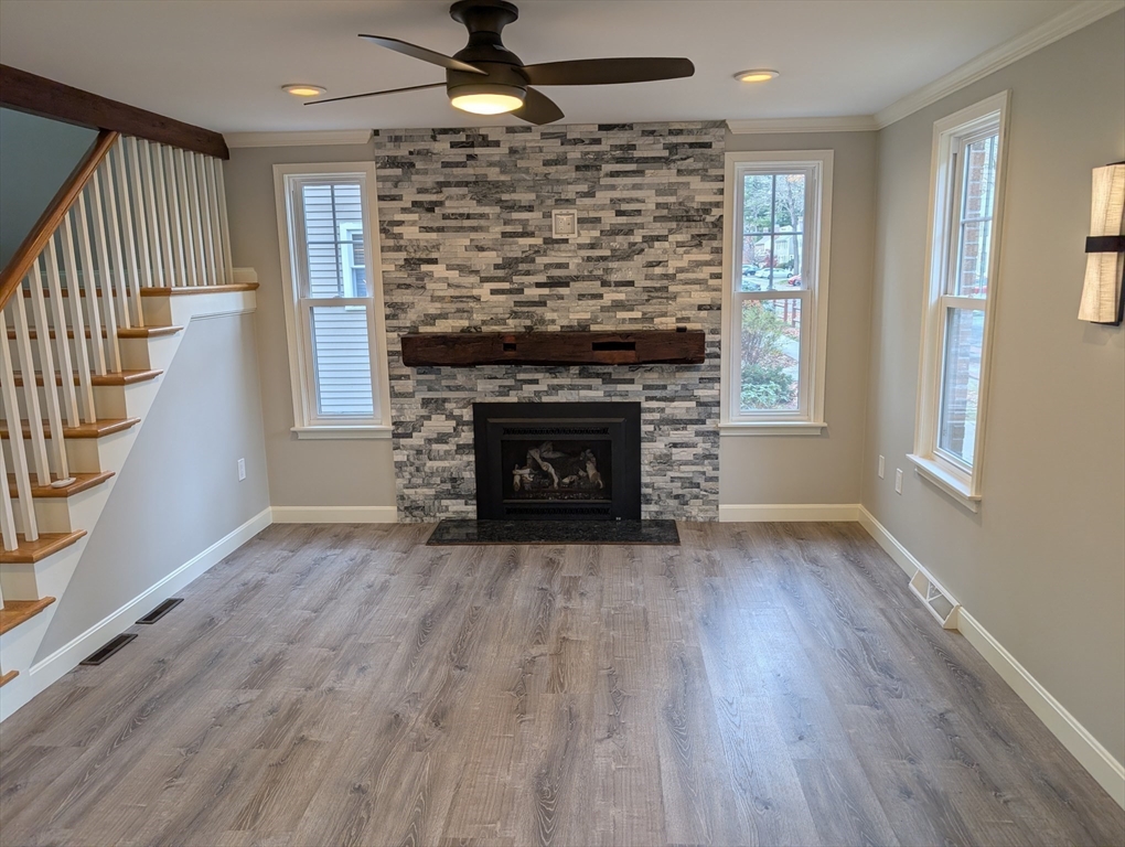 Step inside this great condo in Williamsburg I and be wowed! This stand-alone condo has so much to offer. Sellers have done the unit over from top to bottom. Attention to detail throughout. Unit has seven rooms to include formal living room with gas fireplace, dining room with custom built ins, kitchen with stainless steel appliances, and a quality finished lower level with two rooms and a full bath. One of two rooms can be used as a family room, office or an additional bedroom. Bonus room with cabinets for additional storage and an additional fridge with full bath attached. This bonus room could be used for many things. Closest thing to single family living without the exterior maintenance. Great location within the complex, next to one of two pools and overflow or guest parking. The community also has walk jog trails along the Merrimack River and throughout the community. This is a pet friendly community. Hot water powered by a tankless Rinnai System