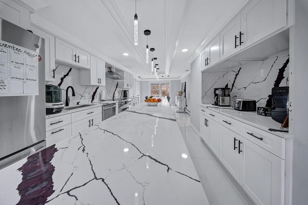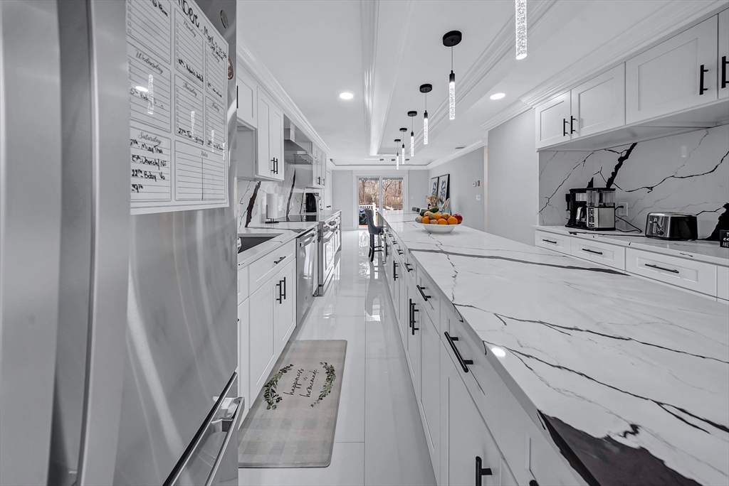 Maintained with care & designed for comfort & practicality, this modern colonial 3 Br 1.5 bath single family home offers exceptional convenience & style. Nestled on a peaceful street yet close to the lively town center, it provides ideal balance of tranquility & accessibility. Step into a spacious living room that flows into the dining area, with modern hardwood floors, creating an inviting space for everyday living. The large kitchen showcases quartz countertops, a striking waterfall island with additional storage, along with sliding doors for exterior access. The second floor offers 3 bedrooms, including a primary bedroom equipped with two walk-in closets for added convenience. Finished basement expands your living area, highlighted by stunning white tile floors, including the stairway. The expansive backyard is perfect for relaxation & entertainment. More features include an above-ground pool, central air, a composite deck, & a 1 car garage. Located near restaurants, shops & Rt135.