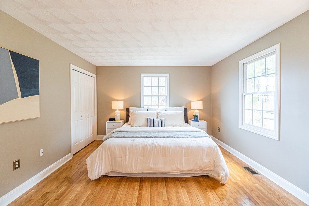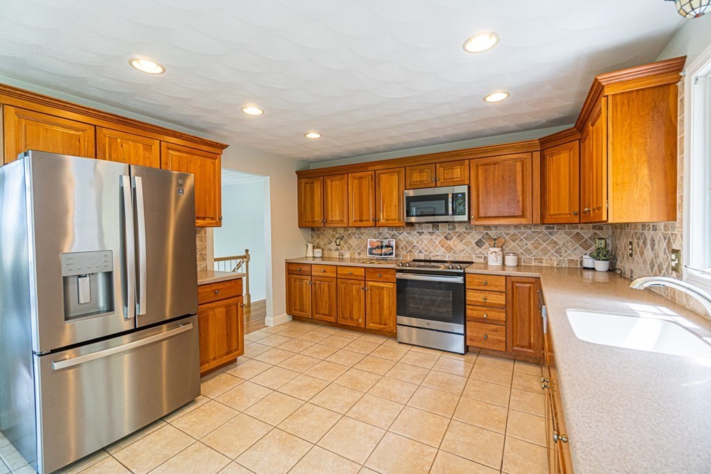 Beautifully maintained and truly move-in ready, this raised ranch sits on a private, scenic lot with sweeping views. The sun-filled living room offers cathedral ceilings and gleaming hardwood floors, flowing into an open dining area and kitchen with generous cabinet space, stainless steel appliances, and direct access to the back deck—ideal for everyday living and entertaining. The main bedroom features double closets, a separate vanity area, and direct access to a full bath. Two additional well-sized bedrooms complete the main level.The finished lower level provides a cozy family room with a fireplace, a second full bathroom with laundry, and plenty of extra storage. A two-car attached garage, private patio, and beautifully landscaped backyard add to the appeal. Additional highlights include central air, central vacuum, a security system, and a convenient mudroom.Conveniently located close to shopping, restaurants, and mor