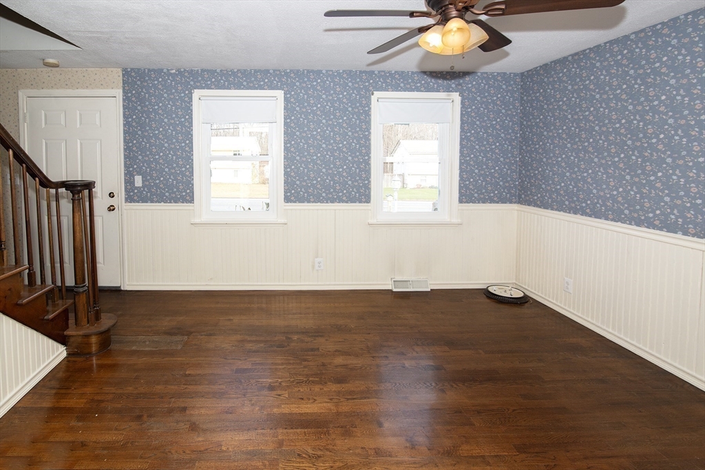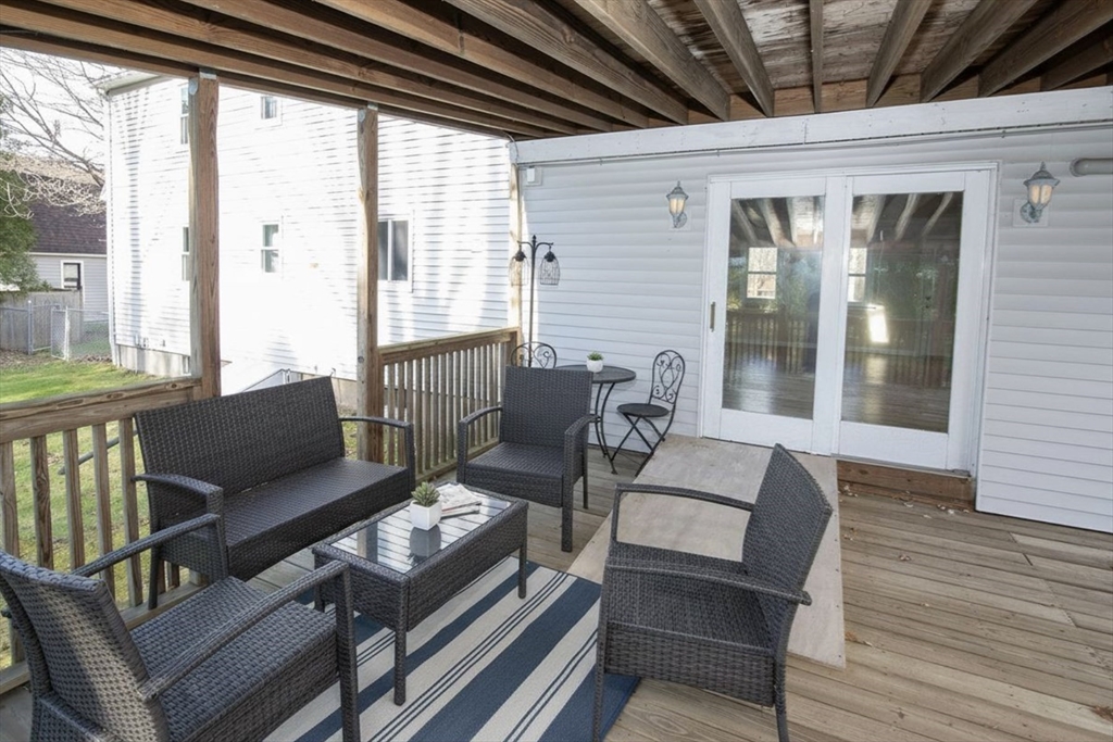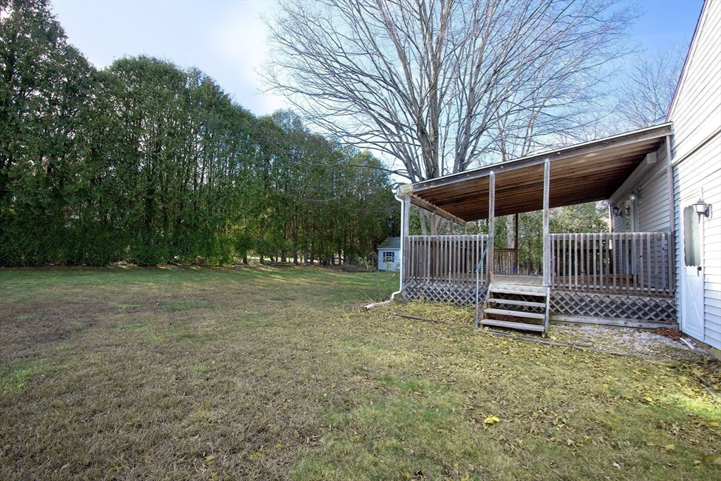 Bright and sunny single-family residence offers an inviting home ready for its new owners. Family room includes vaulted ceiling and skylights creating an airy atmosphere for both relaxation, entertainment and access to the spacious deck ! The kitchen, designed for both functionality and aesthetic appeal, includes center island, making it the perfect space to gather and create culinary masterpieces. The primary bedroom offers a private retreat with its own ensuite half bathroom. Outside , enjoy the expansive 15246 square foot lot area. A shed provides additional storage for your outdoor essentials. The home's gambrel roof adds character and charm to its curb appeal. This property is a treasure offering comfortable living and outdoor enjoyment.