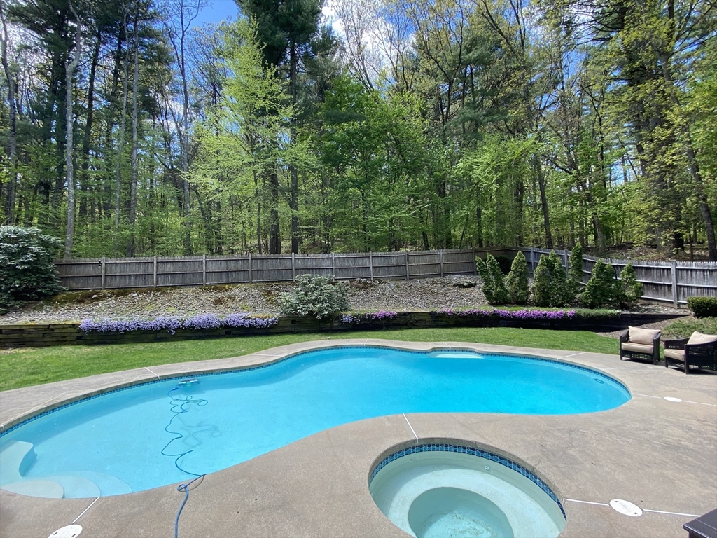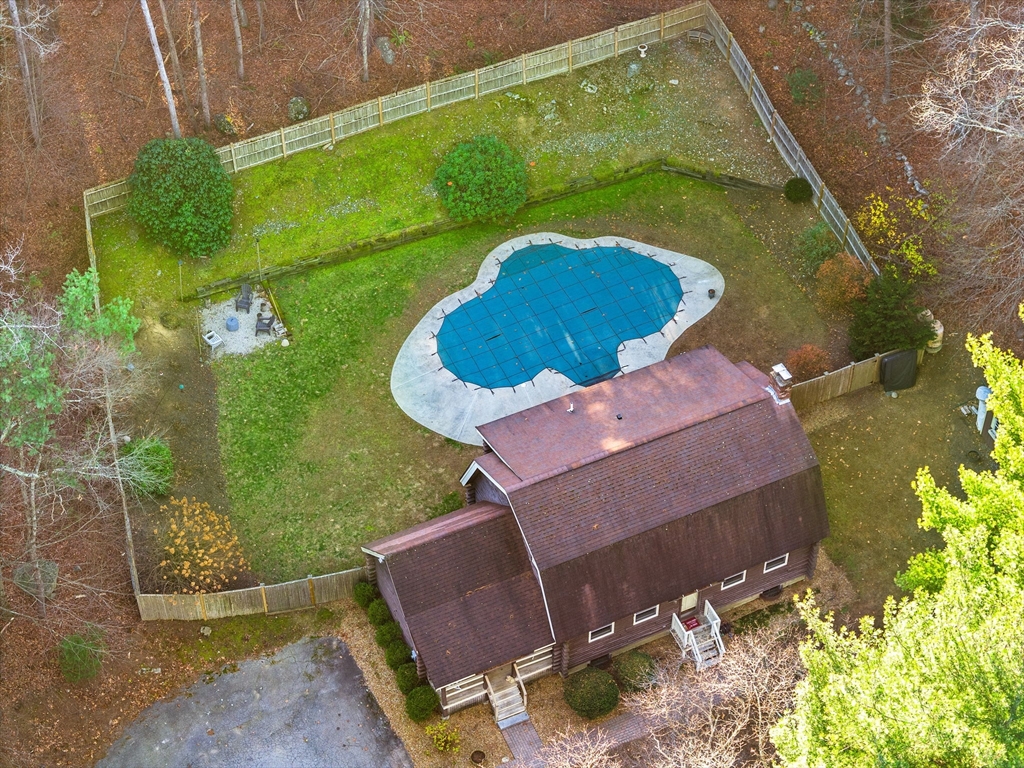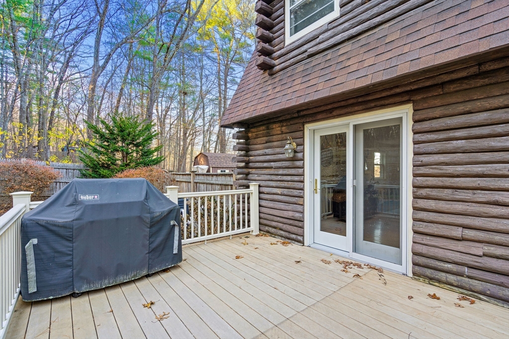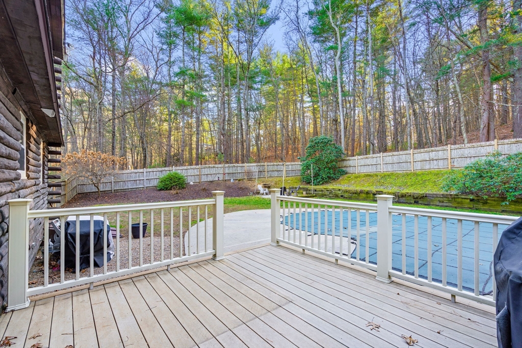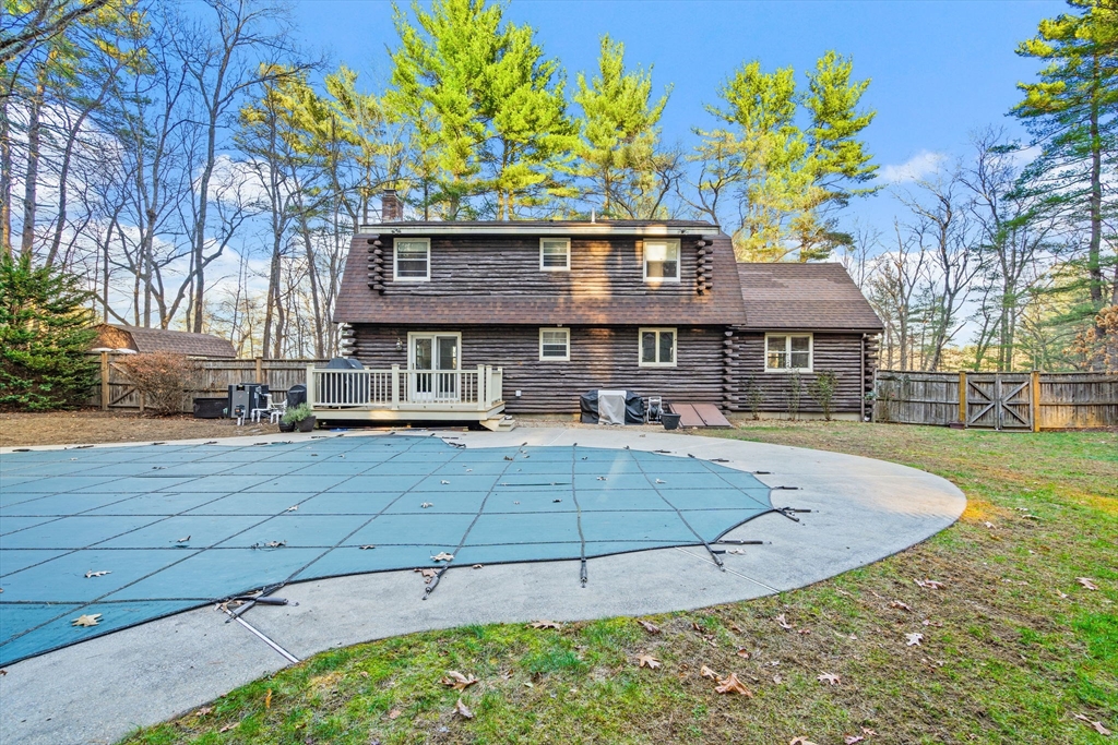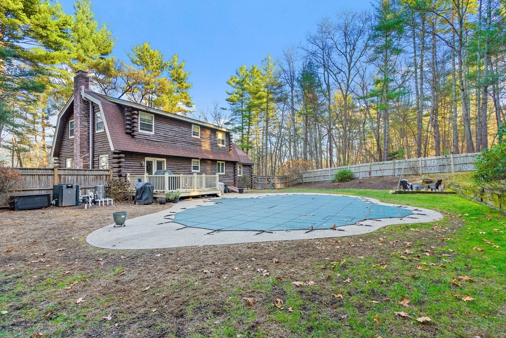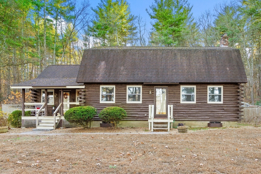 Escape the ordinary & step into something truly special! This expanded log home is a rare Holliston find—warm, inviting, & privately tucked away on a serene retreat lot while still being moments from everything. Just a short walk or bike ride brings you to downtown cafés, shops, & the Upper Charles Rail Trail. The open floor plan offers a front-to-back living room with a cozy fireplace, while the kitchen & dining area flow seamlessly into a spacious family room with gleaming hardwood floors. A full bath completes the 1st floor. Upstairs, the primary bedroom boasts two generous closets, and the beautifully renovated hall bath showcases a rustic-modern design. But the magic happens outdoors: your own private wilderness retreat. Enjoy a fenced backyard filled with birdsong—from bright cardinals to visiting orioles—while lounging by the gorgeous propane-heated Gunite pool. Unwind around the circular firepit as the sun sets & nature fills the air. A home that feels like you are on vacation