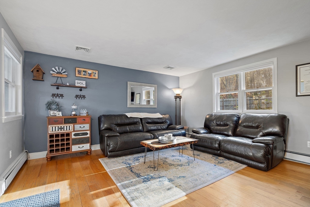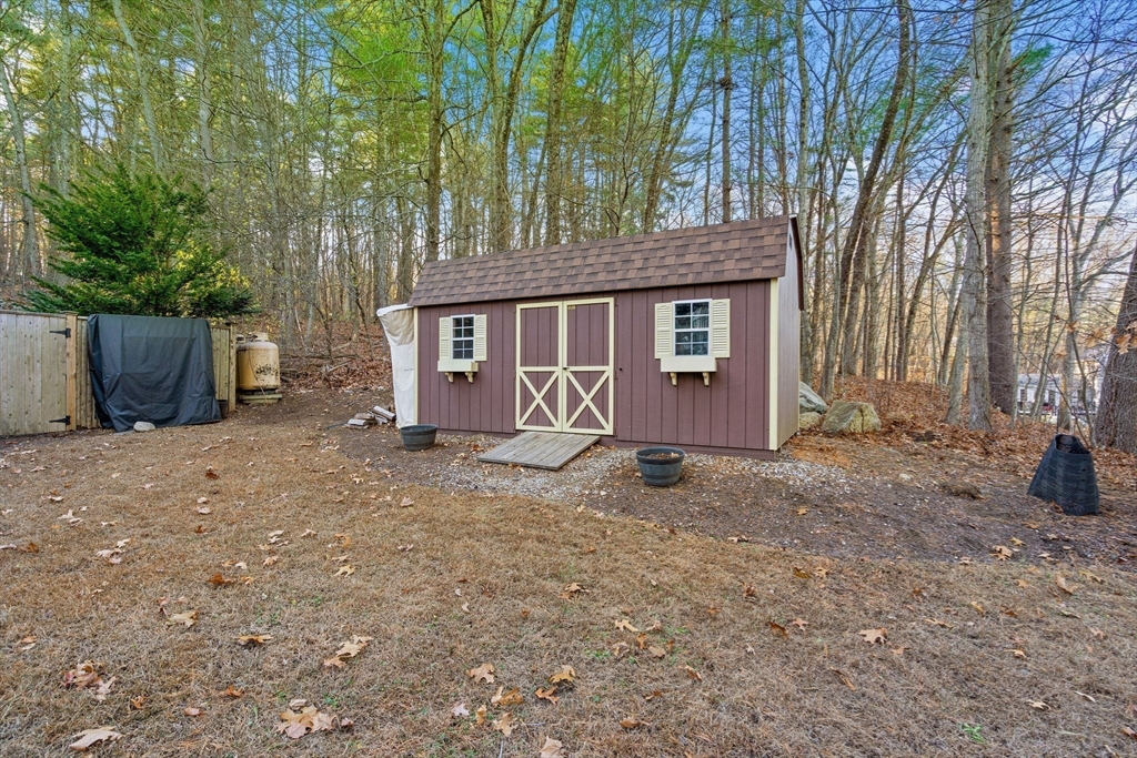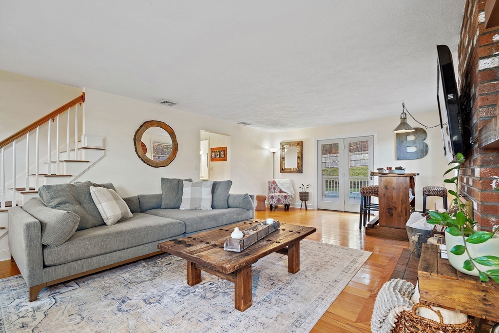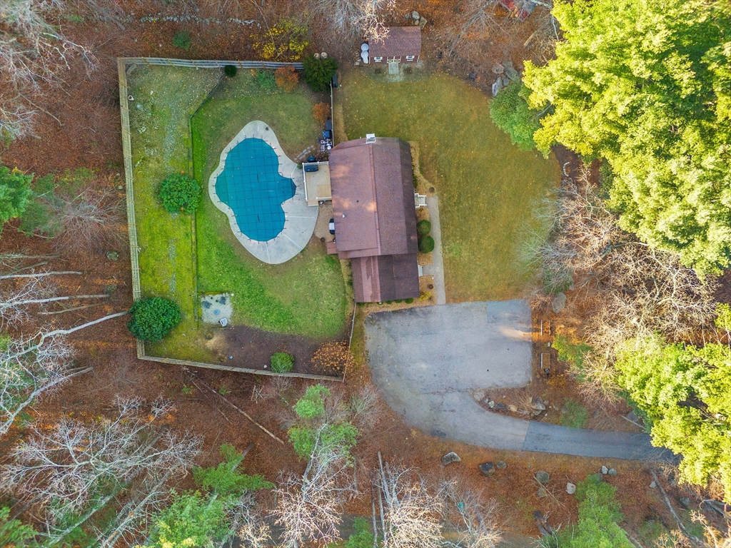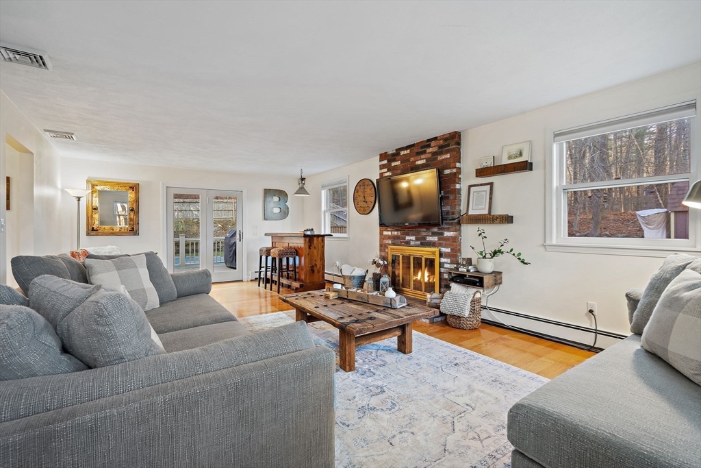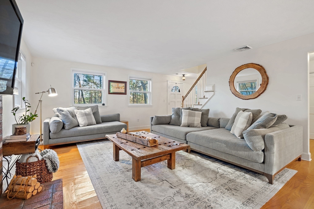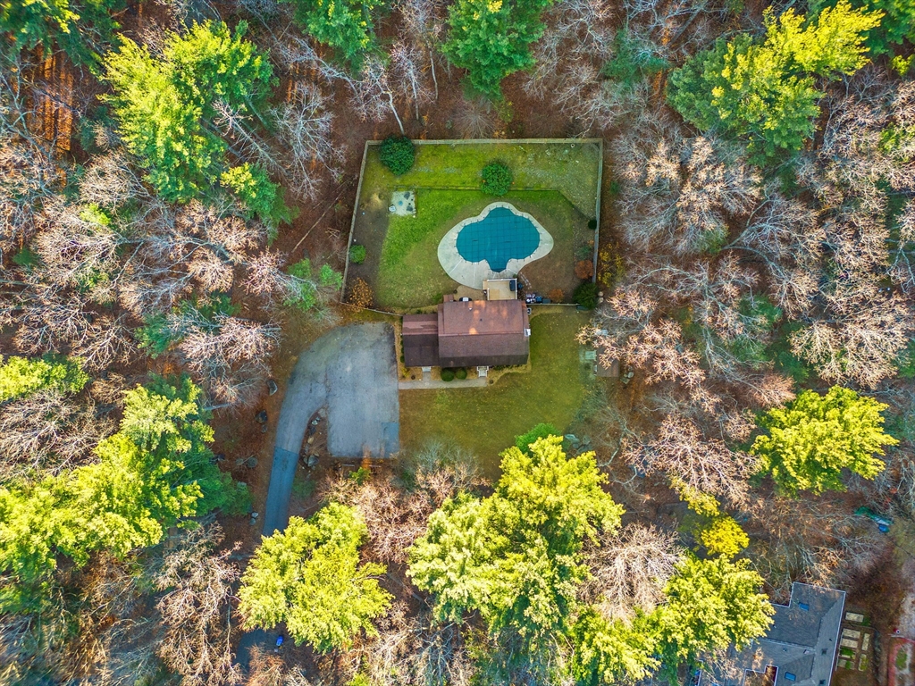 Escape the ordinary & step into something truly special! This expanded log home is a rare Holliston find—warm, inviting, & privately tucked away on a serene retreat lot while still being moments from everything. Just a short walk or bike ride brings you to downtown cafés, shops, & the Upper Charles Rail Trail. The open floor plan offers a front-to-back living room with a cozy fireplace, while the kitchen & dining area flow seamlessly into a spacious family room with gleaming hardwood floors. A full bath completes the 1st floor. Upstairs, the primary bedroom boasts two generous closets, and the beautifully renovated hall bath showcases a rustic-modern design. But the magic happens outdoors: your own private wilderness retreat. Enjoy a fenced backyard filled with birdsong—from bright cardinals to visiting orioles—while lounging by the gorgeous propane-heated Gunite pool. Unwind around the circular firepit as the sun sets & nature fills the air. A home that feels like you are on vacation