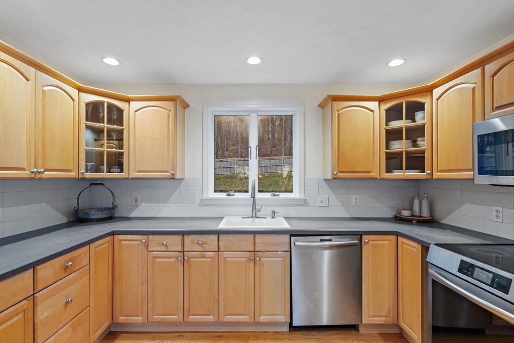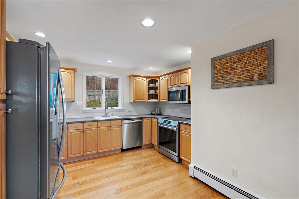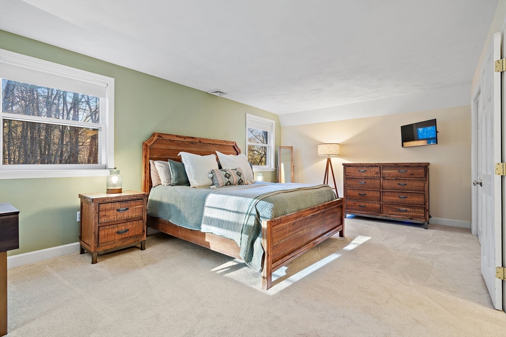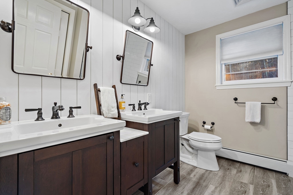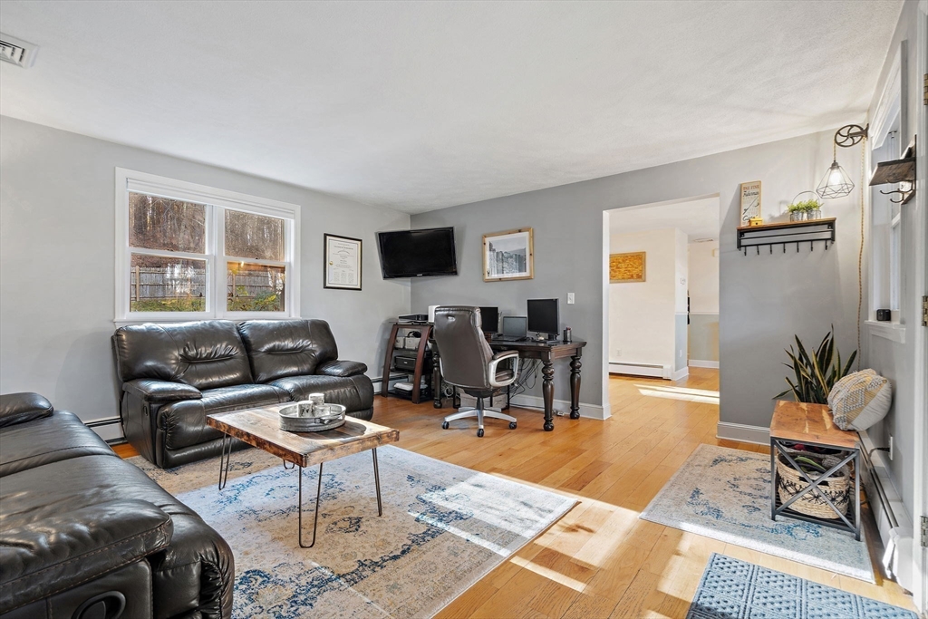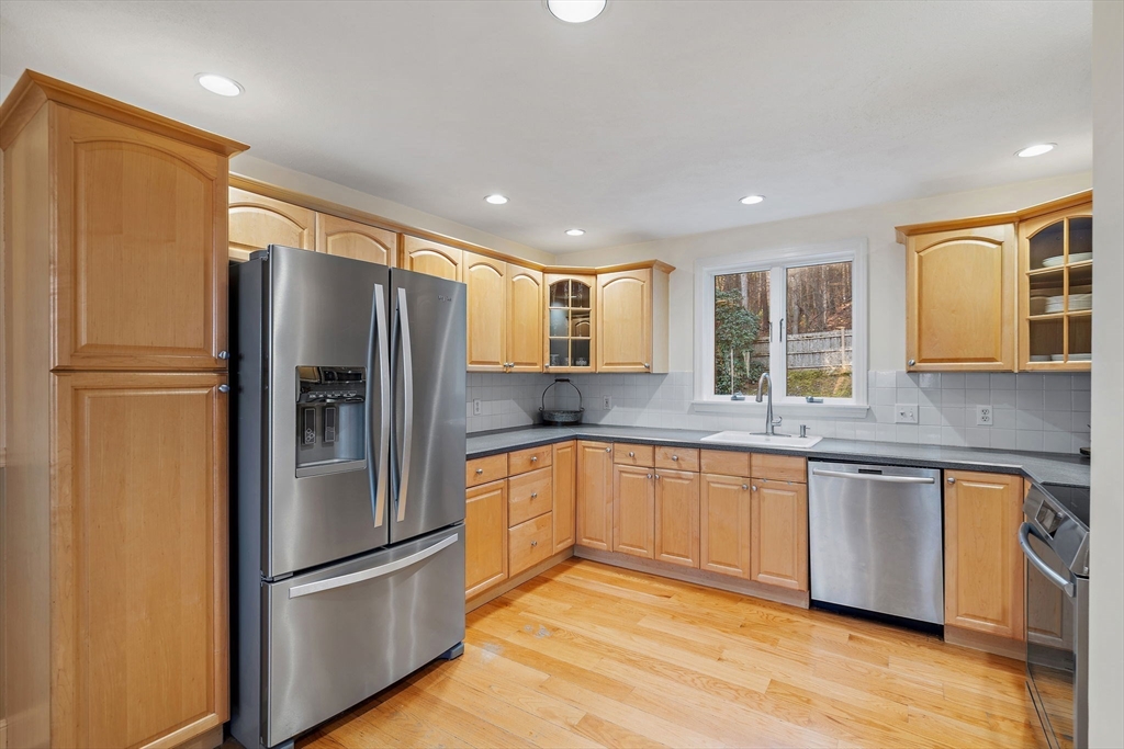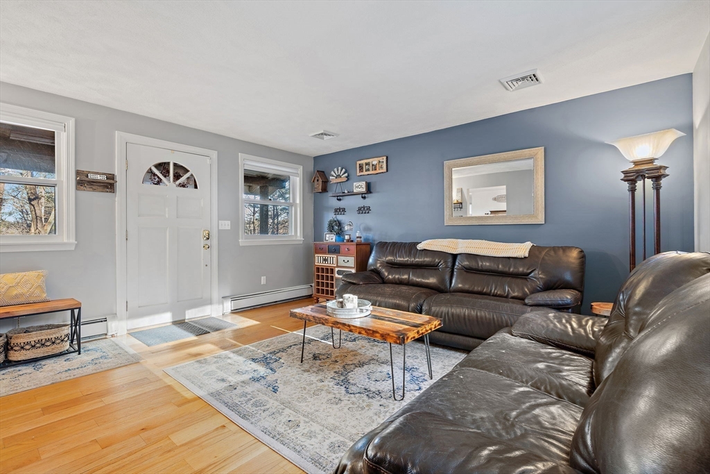 Escape the ordinary & step into something truly special! This expanded log home is a rare Holliston find—warm, inviting, & privately tucked away on a serene retreat lot while still being moments from everything. Just a short walk or bike ride brings you to downtown cafés, shops, & the Upper Charles Rail Trail. The open floor plan offers a front-to-back living room with a cozy fireplace, while the kitchen & dining area flow seamlessly into a spacious family room with gleaming hardwood floors. A full bath completes the 1st floor. Upstairs, the primary bedroom boasts two generous closets, and the beautifully renovated hall bath showcases a rustic-modern design. But the magic happens outdoors: your own private wilderness retreat. Enjoy a fenced backyard filled with birdsong—from bright cardinals to visiting orioles—while lounging by the gorgeous propane-heated Gunite pool. Unwind around the circular firepit as the sun sets & nature fills the air. A home that feels like you are on vacation