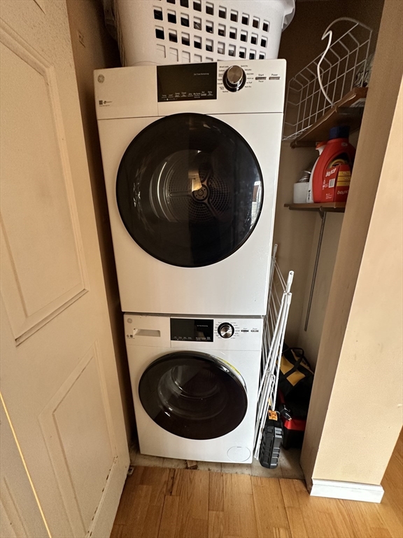 Sunny 2-Bed/2-Bath with Parking | Pool, Gym, Balcony; Spacious and light-filled fifth floor condo, located just over the mystic river from Assembly Square, near Costco and the Gateway Center. This thoughtfully laid-out 2-bed, 2-bath home features an open living/dining area that flows to a private balcony, perfect for morning coffee or evening air. The primary suite includes a walk-in closet and private bath, while the second bedroom sits across from another full bath and in-unit laundry. Central A/C and hardwood floors throughout. The professionally managed elevator building offers amenities, including an outdoor pool, fitness center with sauna, club room, and secure bike and storage areas. Comes with one surface parking lot space. Just across the street from Fellsway Plaza and moments to Wellington Orange Line, Station Landing, and Assembly Row.
