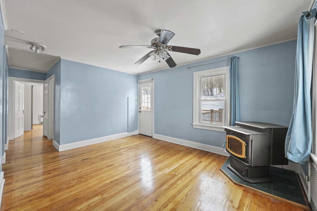 125 Hancock Road sits directly across from Pontoosuc Lake Park, offering peaceful views of the water and a welcoming connection to one of Pittsfield’s most loved outdoor spaces. This bright home enjoys natural light throughout the day, with the living and dining rooms capturing views toward the lake and hills. The main level flows easily, with a living room, dining room, sitting room with woodstove, kitchen overlooking the backyard, a first-floor bedroom, and full bath. Upstairs includes a second bedroom and a large unfinished area with potential for a studio, office, or added living space. The walk-out lower level offers garage access, laundry, and a workshop or recreation area. A spacious back deck overlooks the deep yard framed by mature trees. With park access, boating, walking paths, and sunsets at your doorstep—plus proximity to downtown Pittsfield, Lenox, hiking, and skiing—this home offers an easy Berkshire lifestyle with room to grow.