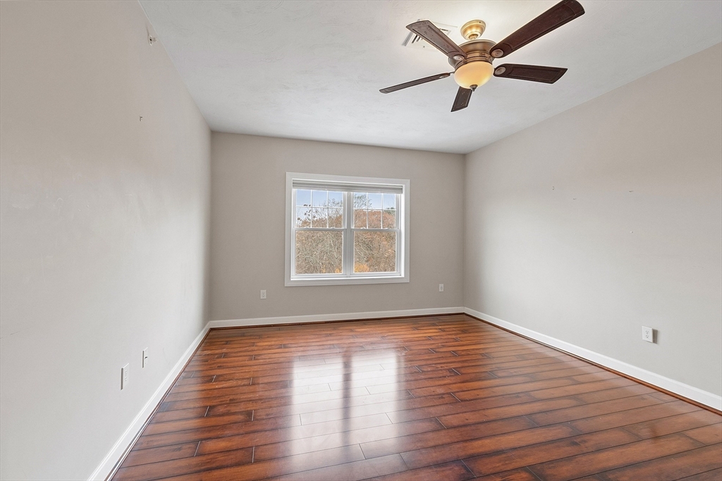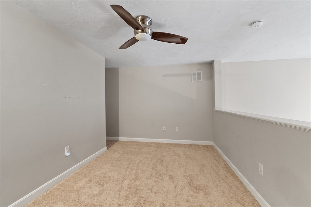 Welcome to the Rose Court community centrally located by a surplus of shopping, restaurants, and quick access to Rt.95, Rt 1, and Rt. 128. The building is locked with mail on the first floor, an elevator to reach the third floor, and an intercom with video in the unit. Trash is located a few doors down from the unit in a room with trash and recycle shoots. Walking into the unit the ceramic white flooring invites you into the large granite counter kitchen, with a tremendous amount of storage, and a pantry closet with built-in shelving. The living area open to the kitchen has a tall vaulted ceiling, and a door to access the balcony with an additional retractable screen door. The engineered hardwood floors make up the living area and flow into the large primary bedroom, with a walk-in California closet, and a full bathroom. Adjacent to the primary bedroom is the second bedroom also with a California closet, Laundry completes the first level, and the loft area is carpeted upstairs.