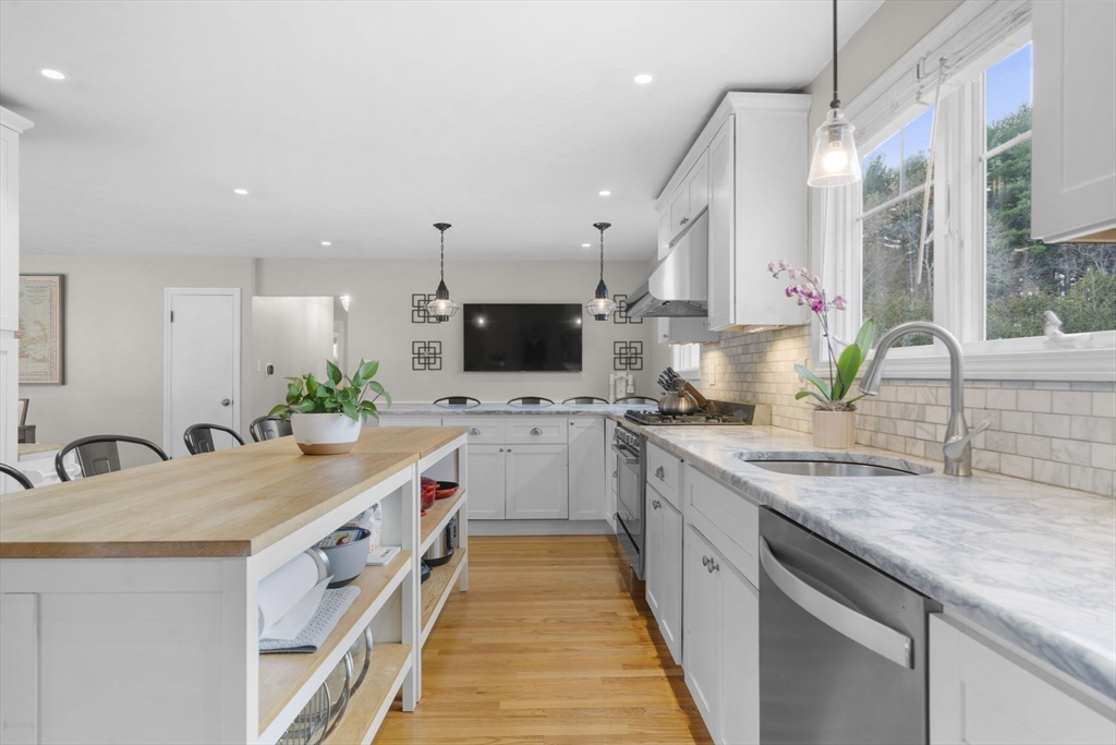 Offer Deadline December 2nd @ 12:00 noon.......This spacious ranch-style home sits on a beautiful corner lot in a quiet cul-de-sac near downtown Andover and offers effortless single-level living with three bedrooms, two full baths, a stunning updated eat-in kitchen, and a formal living room featuring a cozy fireplace and large picture window overlooking the nearly half-acre lot. A generously sized family room opens to the in-ground, heated, saltwater pool, creating the perfect setting for relaxing and entertaining. Hardwood floors run throughout, and the fully fenced yard provides privacy within the desirable Bancroft and Doherty school districts. The lower level features a dedicated gym and a huge unfinished basement offering tons of storage or potential for future expansion. Recent updates include a new heating system, new central air, new fencing, new poolside patio, whole house generator and fresh exterior paint—this home truly has it all.