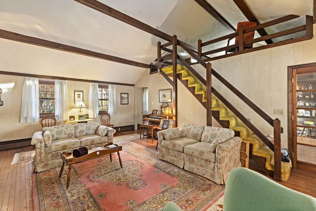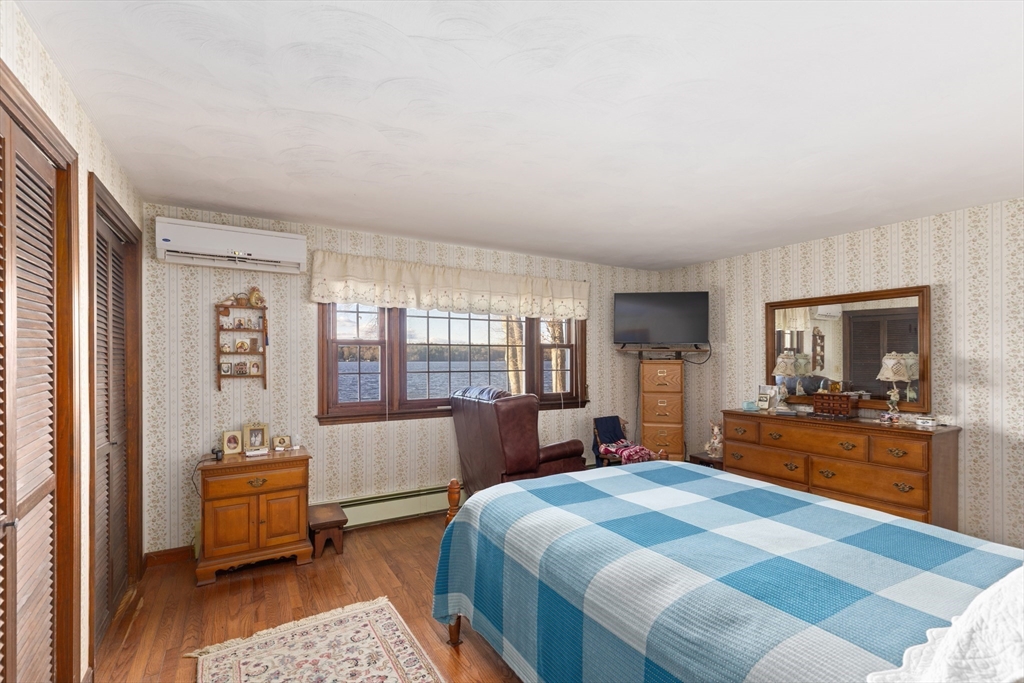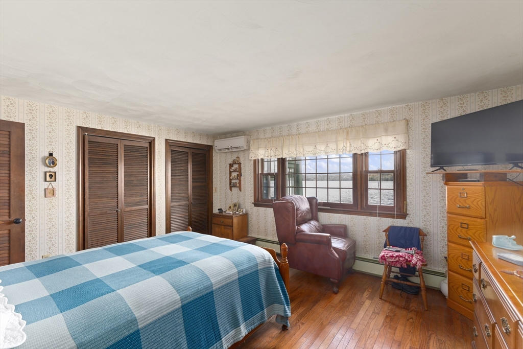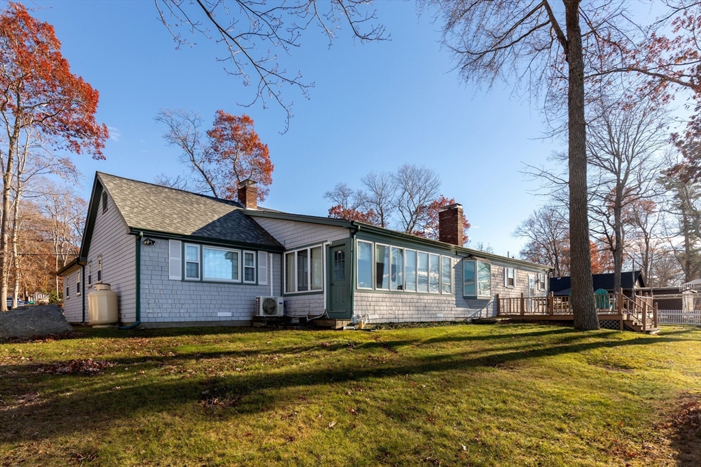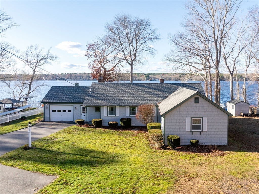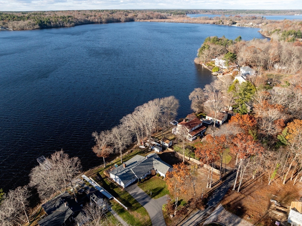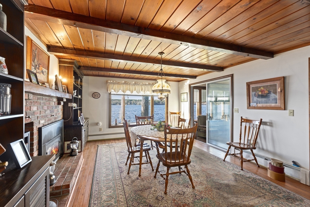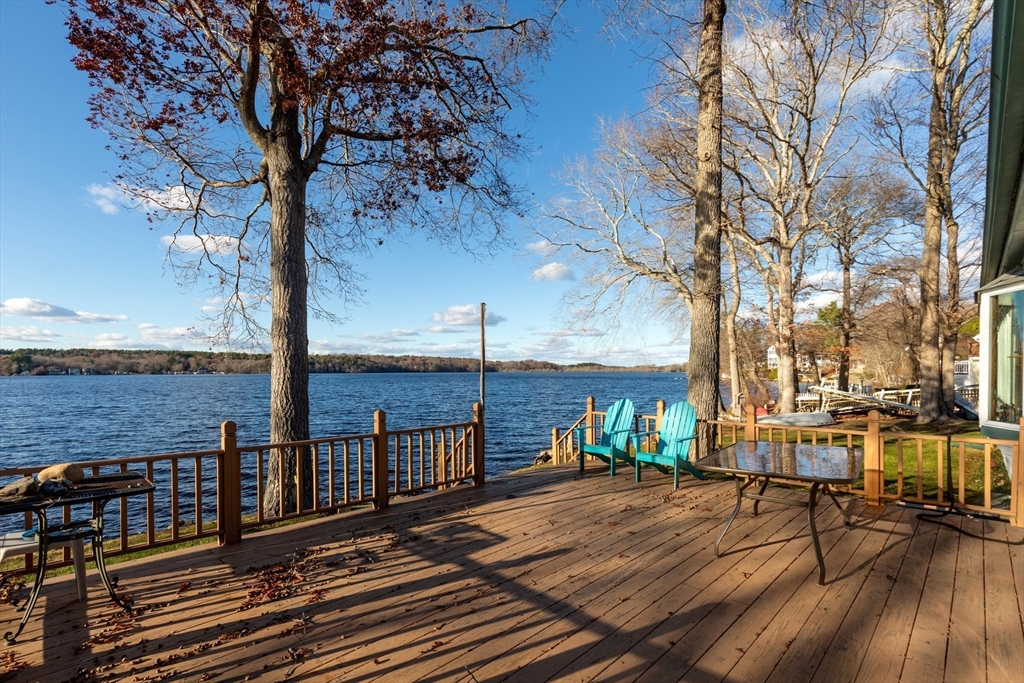 Nestled at 12 Edgewater Dr, Lakeville, MA, this inviting single-family residence on full recreational Long Pond presents an exceptional opportunity to embrace lakeside living in a ready-to-move-in home. The living room is a captivating space, defined by its soaring high and vaulted ceiling, which accentuates the inviting fireplace and distinctive wood wall, while the beamed ceiling adds a touch of rustic charm. The kitchen features a second brick fireplace with gas insert, bay window and wood ceiling that adds warmth and character to the space. Granite countertops provide ample workspace, along with a functional kitchen bar and peninsula that provide options for casual dining and entertaining. An exceptional WATERFRONT property.