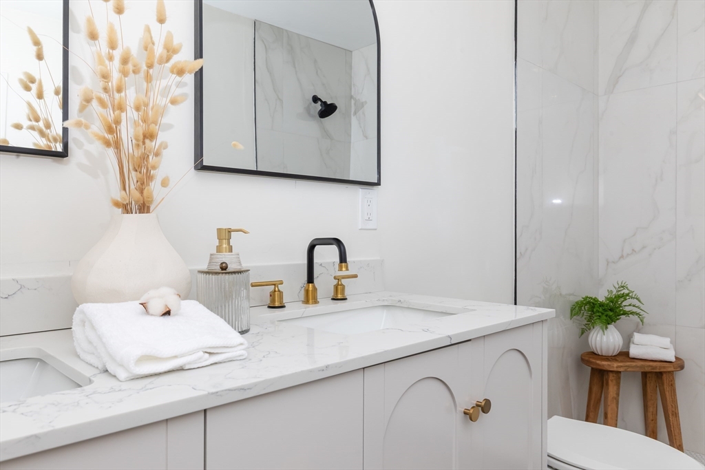 Brand new town-home in the heart of Melrose! Located in the desirable Wyoming Hill neighborhood, this home offers ultimate convenience—leave the cars in the driveway and enjoy walk-ability to the commuter rail, cafés, downtown shops, supermarkets, schools and nearby parks. Built in a timeless mansard style with today’s standards in mind, the home features abundant natural light, tall ceilings, designer kitchen, and solid hardwood flooring throughout. The bright and airy main level offers an open layout with clearly defined spaces for dining, entertaining, working, and unwinding, plus a designer powder room. Enjoy the outdoors on your private, generous deck overlooking the fenced yard. Upstairs includes three bedrooms, two full baths, and a full-size washer and dryer. Primary bedroom offers an oversized shower and extra large double vanity. The basement provides ample storage, and the home comes with exclusive 2-car driveway parking. Built with modern conveniences and fine craftsmanship