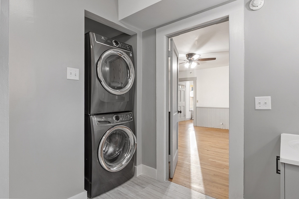 Generous 2+ bedroom, 2 full bath duplex located on a picturesque lot available December 1 for rent. Features include, open concept living room/dining room, kitchen w/lots of storage/cabinets, and a second floor office. Mostly hardwood flooring throughout along w/easy to maintain ceramic tiled bathrooms, exterior access to the beautiful backyard and shared patio area. Stackable washer dryer in unit is a real plus!! Plenty of off street parking, unfinished LL and walk up attic provides ample storage. Located within a short distance to local area shopping, restaurants, gyms and easy access to major highways. Please note that this unit is half a duplex, not the entire home. The other unit is on the right, with separate entrance. Tenant responsible for all utilities except water, refuse removal. References, first, last and security. No pets.