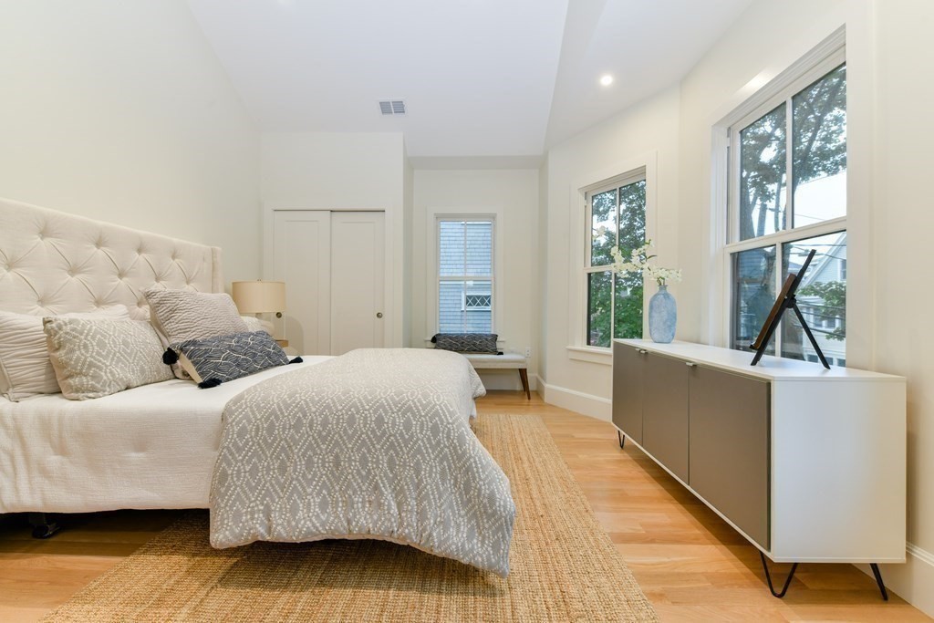 2020 renovated luxury 4 BR home on a charming street in Riverside! Close to both Harvard & MIT. Perfect blend of contemporary and classic allows for any style furniture. The first floor is spacious open-concept with high-end kitchen and oversized living and dining areas. Kitchen has sleek beautiful custom cabinetry, quartz countertops, Wolf and Sub-Zero appliances, and a large island with in-kitchen eating. All the bedrooms, including Primary bedroom suite have sophisticated custom closet systems. 3 bedrooms on the 2nd floor and 1 in the lower level. Lower level has additional family room/home office. Radiant floors in primary bath and lower level bath. 3 heat and AC zones. Instant hot water heater. Wired throughout with Cat6. ADT Security+Fire System with Cell communicator. Assigned parking space with fast dedicated level 2 car charger. Very private outdoor space which includes a patio, lawn and garden. Perfect for outdoor entertaining.