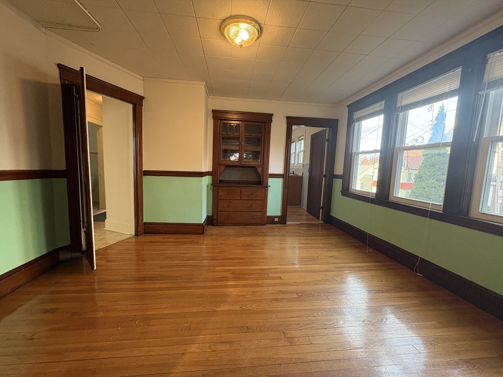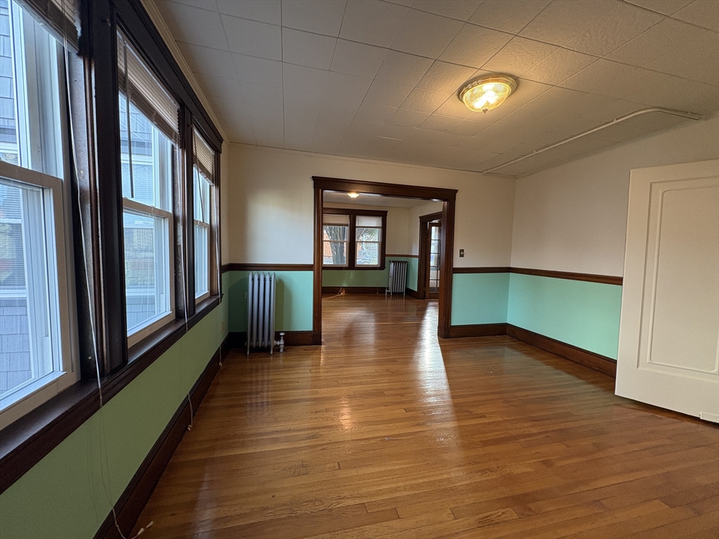 Gorgeous layout- 2 bed, living room, dining room, eat in kitchen AND enclosed porch (can be used as an office or third bedroom).City views, beautiful landscaping, and tons of natural sunlight. Hardwood floors throughout.Garage parking available for rent. Mission Hill neighborhood- close to Northeastern, Longwood Medical, MCPHS.