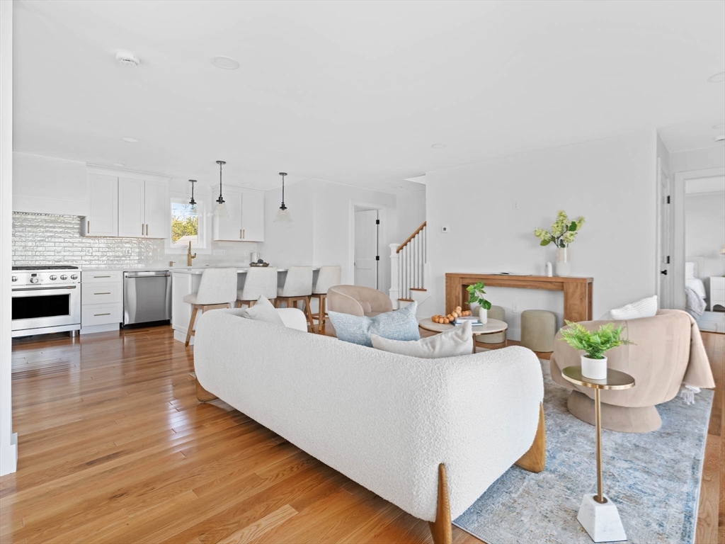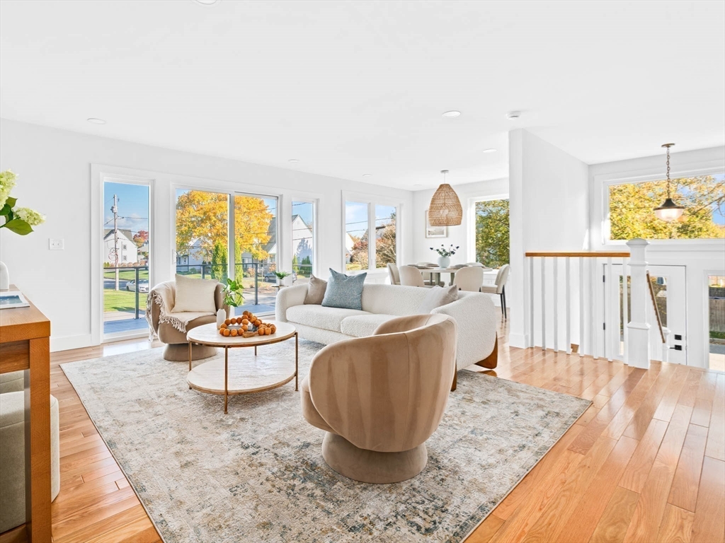 NEW CONSTRUCTION! This reimagined three-level home features a contemporary design with light-filled spaces and coastal style. The 4-bed, 2.5-bath main house offers white oak floors throughout. The main level includes a custom kitchen with high-end appliances and an island for four, opening to living and dining areas that lead to a private deck. A half bath and tucked-away primary suite with walk-in closet and large ensuite bath complete this level. The upper level features a vaulted secondary living area with oversized windows, three bedrooms, a full bath, laundry, and a balcony for sunset views. The ground level includes a mudroom and a fully equipped ADU with its own kitchen, living and dining areas, bedroom, full bath, laundry, and private entry—ideal for guests or rental income. Located steps from King’s Park Beach, Newport Harbor, shops, and restaurants, this turn-key property offers luxury, convenience, and coastal living.