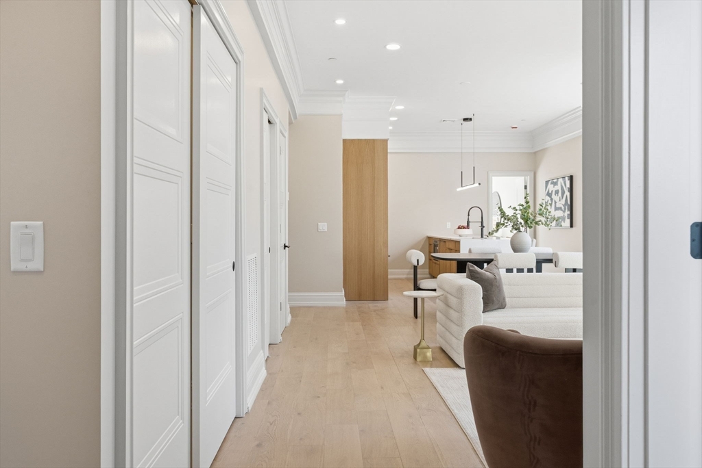 Introducing The Corinthian, Waltham’s newest luxury residence. Once St. Charles Borromeo Church, this beautifully restored 1915 landmark now offers 20 boutique condos defined by refined modern finishes and thoughtfully crafted layouts. Unit 1—our last remaining three-bedroom home—features three bedrooms, two bathrooms, a versatile den, and a rare exclusive private patio and yard space. The neutral-toned kitchen showcases a Fisher & Paykel appliance package, custom cabinetry by Metropolitan Cabinets, and Pental Quartz Lux Aurum countertops and island, creating a warm yet sophisticated aesthetic. Building amenities include a Butterfly intercom system, elevator, fully equipped fitness room, shared outdoor patio, and more. Ideally situated just steps from lively Moody Street, residents enjoy easy access to charming restaurants, unique shops, and scenic parks. Now 70% reserved—don’t miss this limited opportunity to own in one of Waltham’s most iconic transformations!