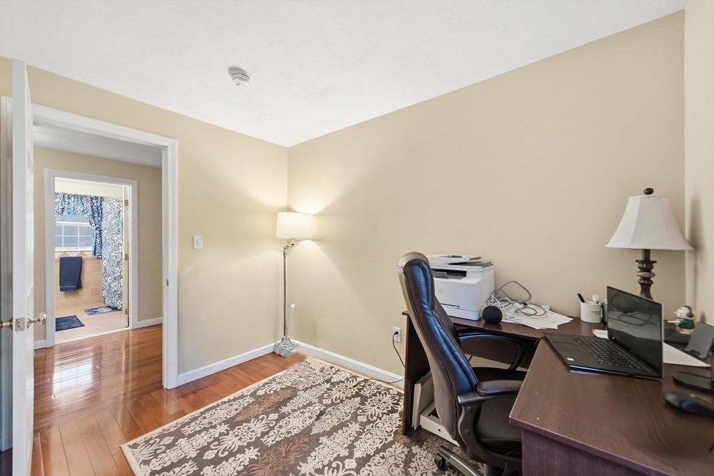 Nestled at the end of a quiet cul-de-sac, this inviting colonial offers an abundance of space and modern comforts. The home features a generous eat-in kitchen complete with a center island, sleek granite countertops, and stainless-steel appliances. Hardwood flooring extends across both the first and second levels, adding warmth and elegance throughout. The finished third floor provides additional flexible living space, outfitted with plush wall-to-wall carpeting and a heating and cooling system for year-round comfort. This home entails a cozy gas fireplace, a wireless irrigation system, a full security setup, and a bright three-season sunroom ideal for relaxing or entertaining. A newer Trex deck enhances the classic farmer’s porch, while the beautifully crafted paver driveway adds impressive curb appeal and you can see how well maintained this home is; these pictures do not do this home justice! Come check it out this weekend at Open House!