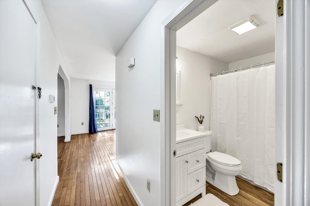 Welcome to Ryder Woods in Sandwich! This beautifully maintained Cape Style home has been in the same family since it was built in 1991, offers 3 bedrooms, 2 full baths, and a versatile den. The open-concept kitchen, dining, and living area features hardwood floors, creating a warm and inviting space perfect for entertaining. Upstairs, you'll find two spacious bedrooms and a full bath, while the first floor includes a bedroom and a den ideal for a home office. Step out from the kitchen onto a deck overlooking a private, fenced-in backyard with a shed that abuts Conservation Land, providing direct access to scenic hiking trails for outdoor adventures. Recent updates include new windows, bathroom vanity and brand-new carpets in the bedrooms. This property also has a full basement, great for storage or a workshop area, and natural gas heat by forced hot air for year-round comfort. Situated near shopping, dining,Holly Ridge golf course and with easy highway access.