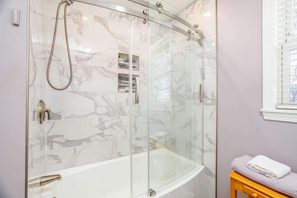 Enter this Garrison colonial & your eyes will be drawn to the alluring H/W stairway w/wrought iron balusters &shiny H/W flooring throughout. 6 yr young cherry kitchen complete w/cherry butcher block island w/drop lights, stone backsplash& soft close cabinets w/pull out drawers. Dining opens to living & family room with Atrium doors to enclosed screen porch w/knotty pine ceiling1 & 1rst flr.1/2 bath & washer/dryer. Master bedroom is amazing w/huge walk-in closet (big enough for a nursery) & a fabulous bath w/glass tiled shower, heated tile floor, heated LED mirror & air jet tub. The secondary full bath offers curved soaking tub,heated floor & LED mirror. And in the lower level is possible in-law or teen space w/kitchen, living, bedroom & rear entrance. So much to mention...all quartz counters, D/P windows, 2 car heat.garage, Central Vac, Central Air & heat 2 zones, new Rinnai on demand H20, cul-de-sac locale. Showings start at O/H Sat & Sun 1-3pm