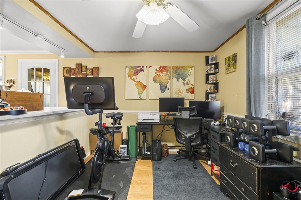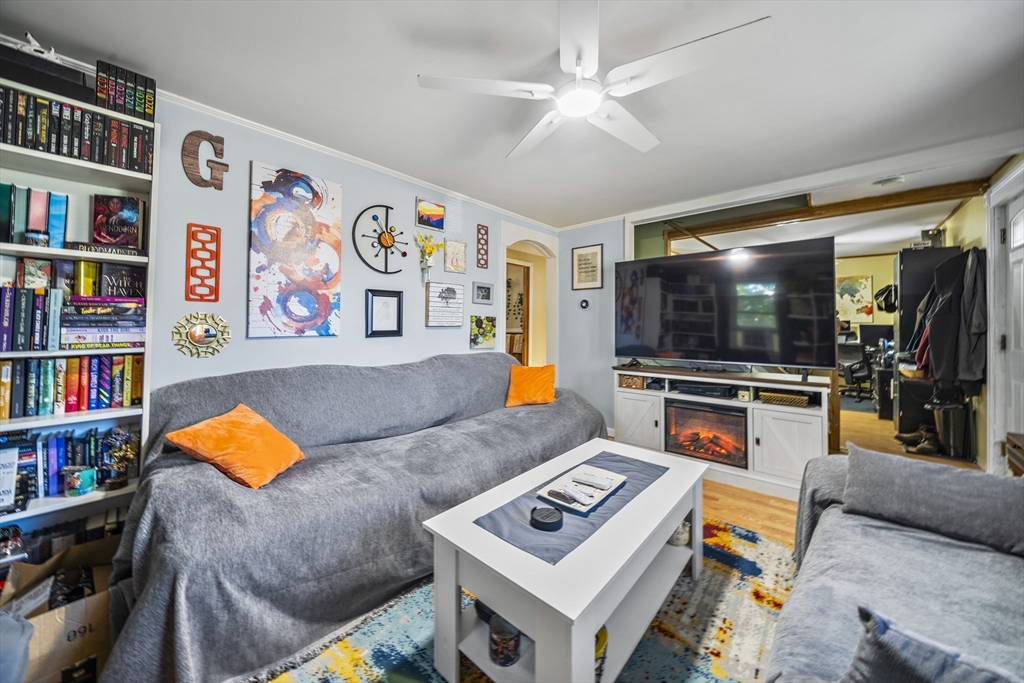 Welcome to this beautifully updated Cape, freshly painted and topped with a brand-new roof. Nestled on a quiet side street, the home offers both tranquility and convenience—just minutes from restaurants, shopping, parks, and major routes. Inside, the living room centers around a warm, inviting fireplace, perfect for cozy evenings or effortless entertaining. The kitchen features stainless-steel appliances that remain with the home, adding modern ease to everyday living. A spacious primary bedroom and full bath are located on the main level, while two generously sized bedrooms await upstairs. Practical touches, including a mudroom and one-car garage, enhance daily comfort. Built in 1948, this home seamlessly blends timeless character with modern updates, making it a truly special find.