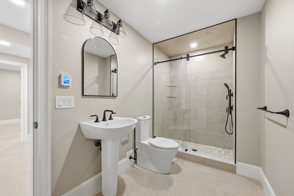 NEW CONSTRUCTION: 83 Old Mail Rd is a stunning 3 BR, 4.5 bath, 5,154 sf retreat in North Chatham. This elegant home showcases exceptional craftsmanship & high-end finishes for coastal living. The Thermador kitchen with quartz counters & waterfall island opens to a butler's pantry with custom sink, beverage fridge & first-floor dining room with coffered ceiling. A gas-fireplaced living room flows to a 3-season screen porch & deck overlooking a backyard with pool potential. The 1st-floor spa-like primary suite offers a gas fireplace, radiant tile bath & walk-in closet, while a sunlit office provides private workspace. Upstairs are two en-suite bedrooms & a 2nd laundry. The finished lower level with high ceilings features a family room, bonus room, wet bar & full bath. Additional highlights: custom woodwork, secondary 1st-floor laundry, powder room, outdoor shower, 12-zone irrigation by well, multiple gas systems, 400-amp service, Generac generator & 2-car garage w/50-amp EV outlet.