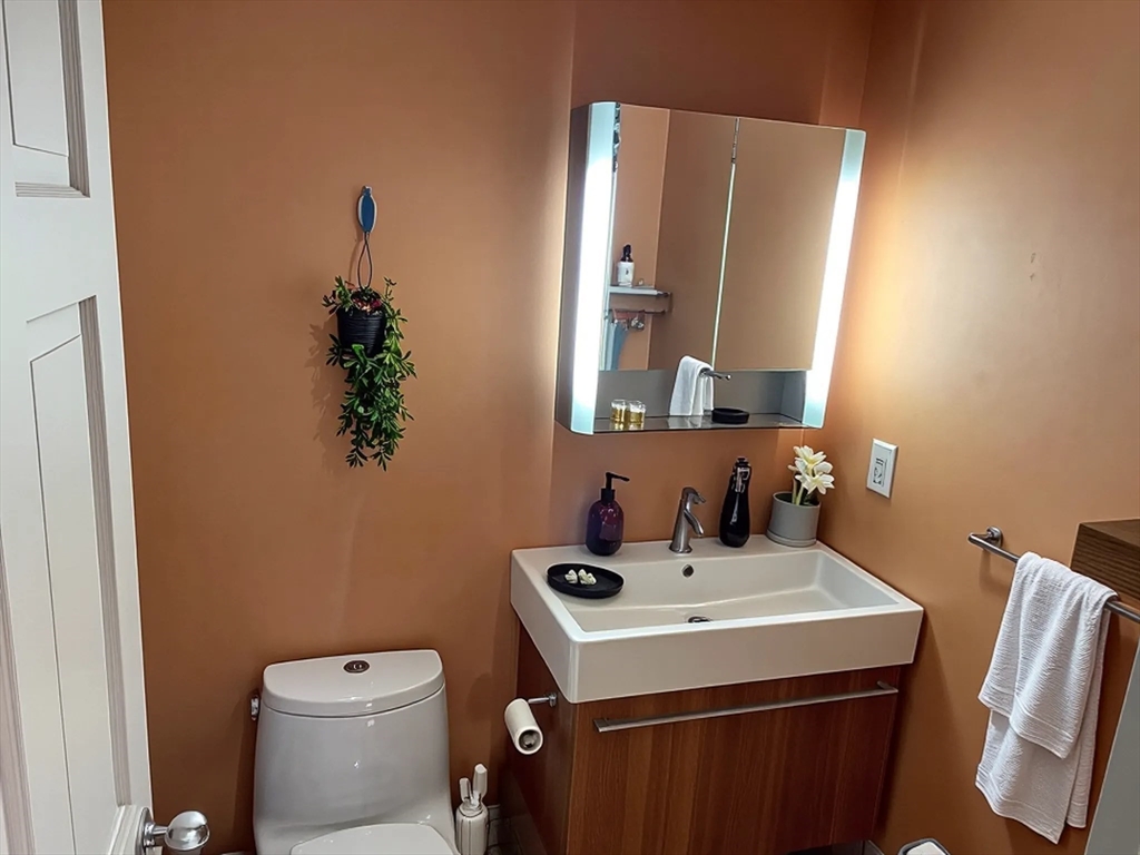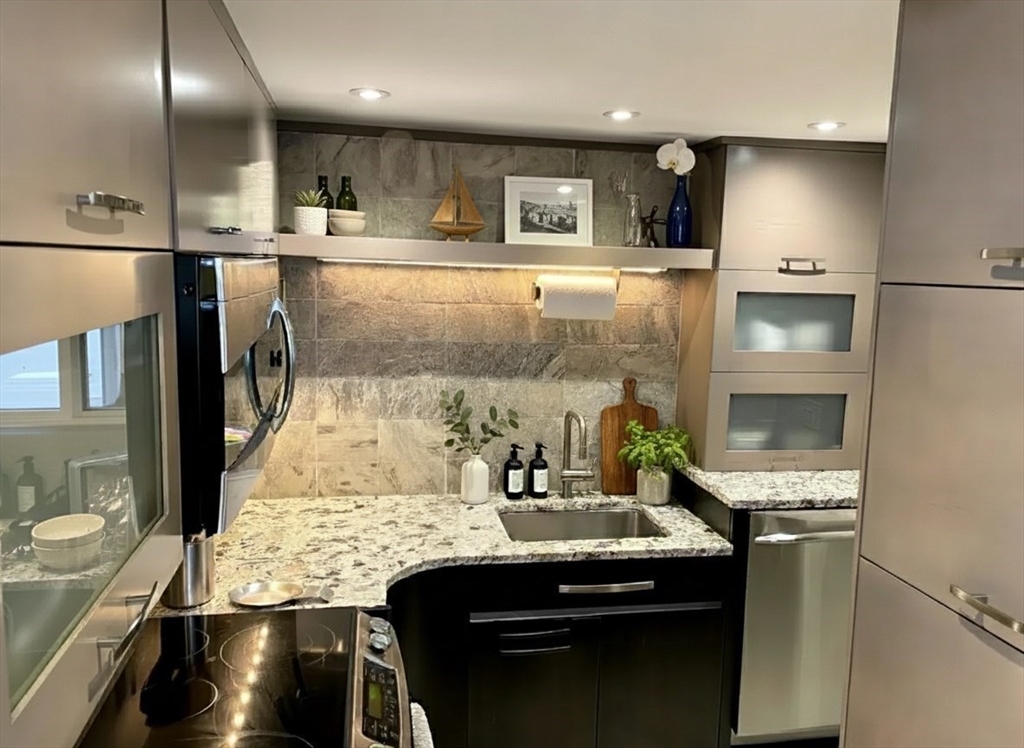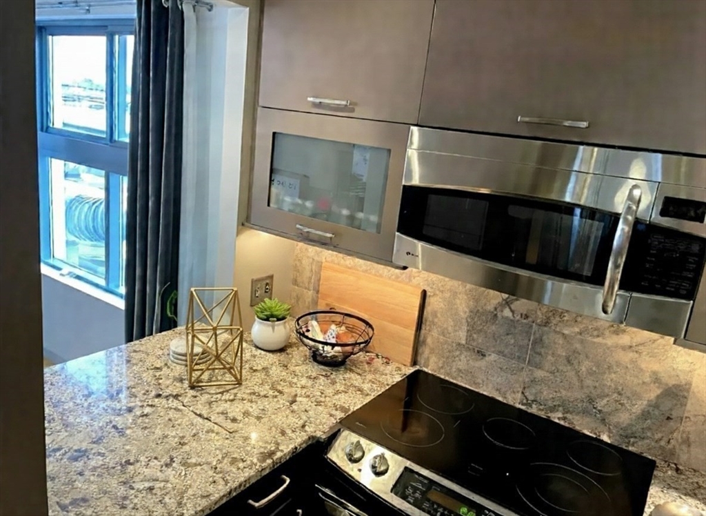 Beautifully updated penthouse apartment at The Pavilion! This 2 bed, 2 full bath residence offers a bright, inviting layout with a full kitchen featuring granite counters and stainless steel appliances. The primary suite includes a private balcony, custom closet storage, and an upgraded bathroom with a heated towel rack. Additional highlights include hardwood floors throughout, a dining area with skylight, wine fridge, and Nest thermostat. One garage parking space is included in the rent! The Pavilion is a professionally managed building offering fantastic amenities, such as common roof deck, outdoor pool, fitness room, and bike storage. Conveniently located near Kendall Square, shops, restaurants, and public transit, this home puts the best of Cambridge right at your doorstep.