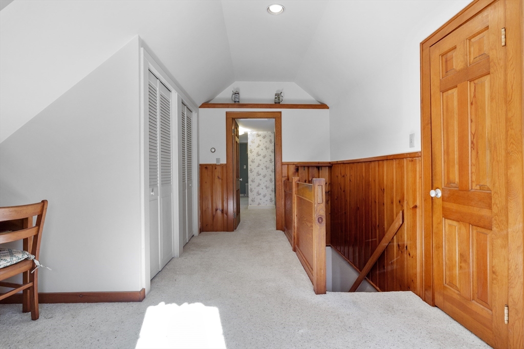 This charming Cape home is a rare opportunity that offers a condo alternative or starter home. Conveniently located close to town, top rated school and easy access into Boston.First floor layout includes eat in kitchen, dining room with classic built in cabinet, living room with fireplace, and family room that leads to a screened in porch. Primary bedroom and full bath are located in the back the house facing the sprawling, flat, fenced in back yard. Upstairs, two generously sized bedrooms with built ins and ample closet space. The deck offers a private place to relax or entertain. Oversized garage has expansive space for two cars and storage. Welcome home!