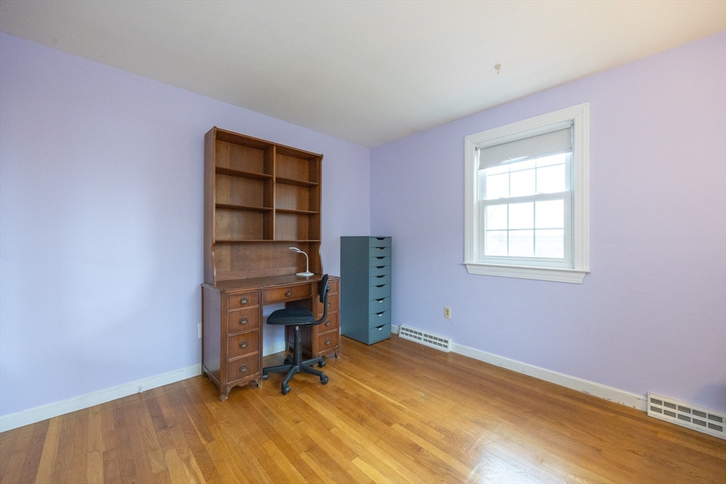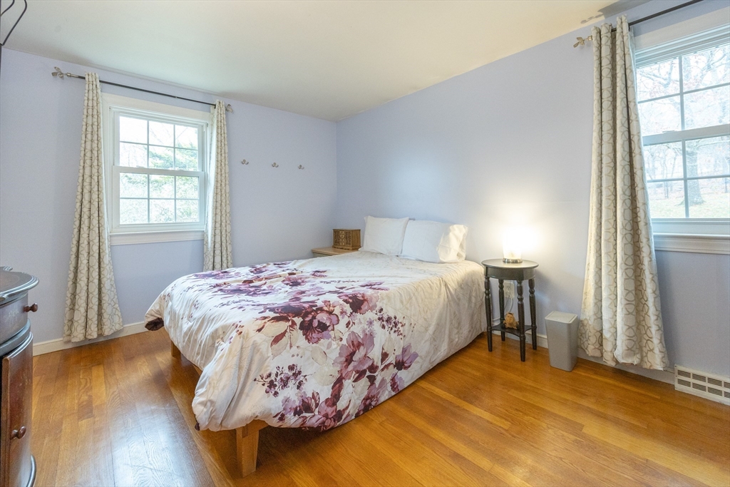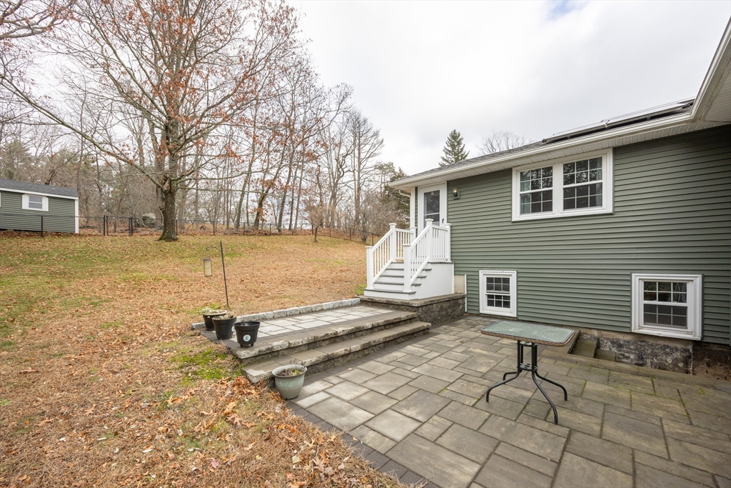This inviting 3-bedroom, 2-bath split-level home is located in a neighborhood with easy access to the highway and area amenities. It sits on a fenced yard with a brand-new patio. The spacious kitchen features a pantry, offers direct access to the yard, and flows seamlessly into the dining room. A large dining room opens to the bright living room, complete with a fireplace and bay window. Down the hall are three comfortable bedrooms and a renovated full bathroom showcasing a large tiled shower. The lower level provides a fourth bedroom or office and full bathroom with walk-in shower. A generous family room with a second fireplace creates an ideal gathering space. A bonus room at the back of the home offers flexibility for play, fitness, or hobbies. Completing the lower level is a convenient laundry room and a walk-out to the tree-lined yard. Important features include: heat system 2020, central air 2024, replacement windows, new heat pump, mini-split in lower level and solar panels.