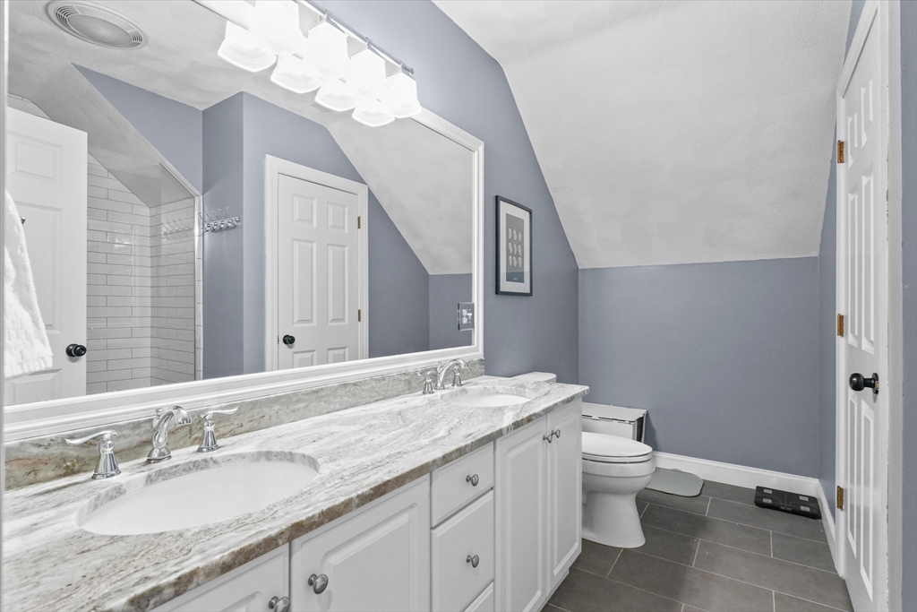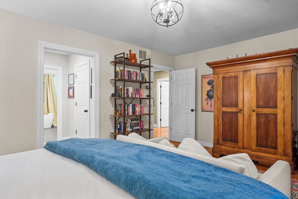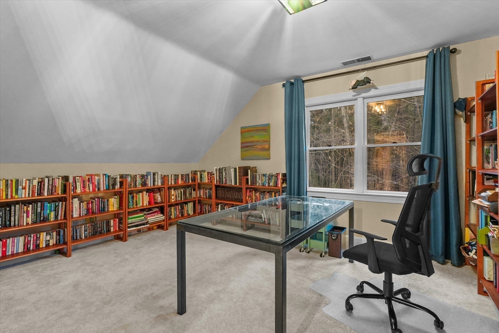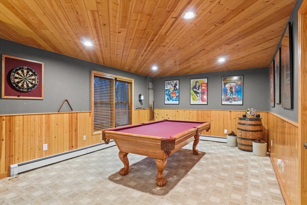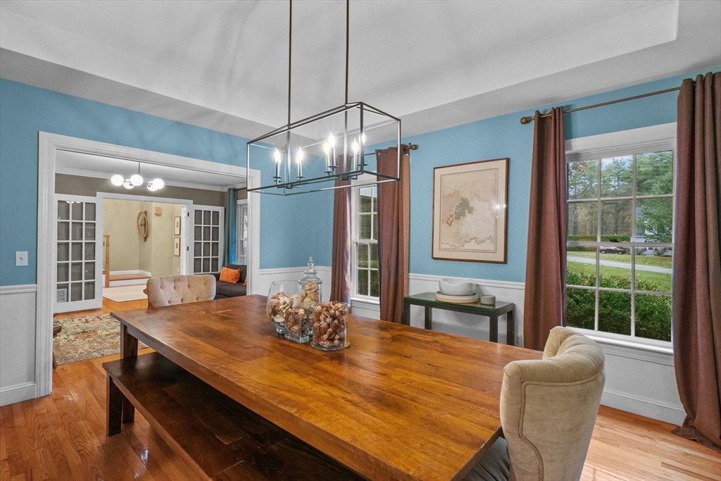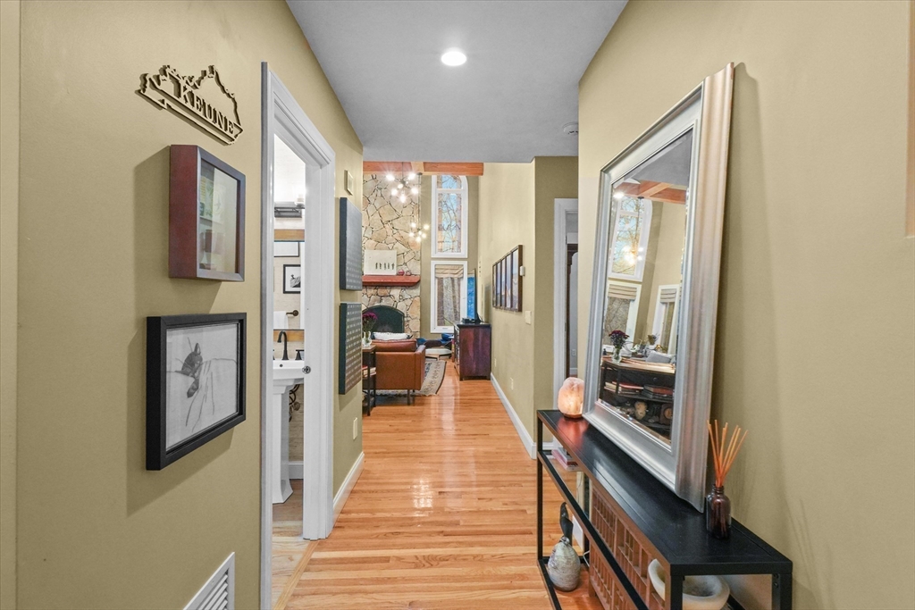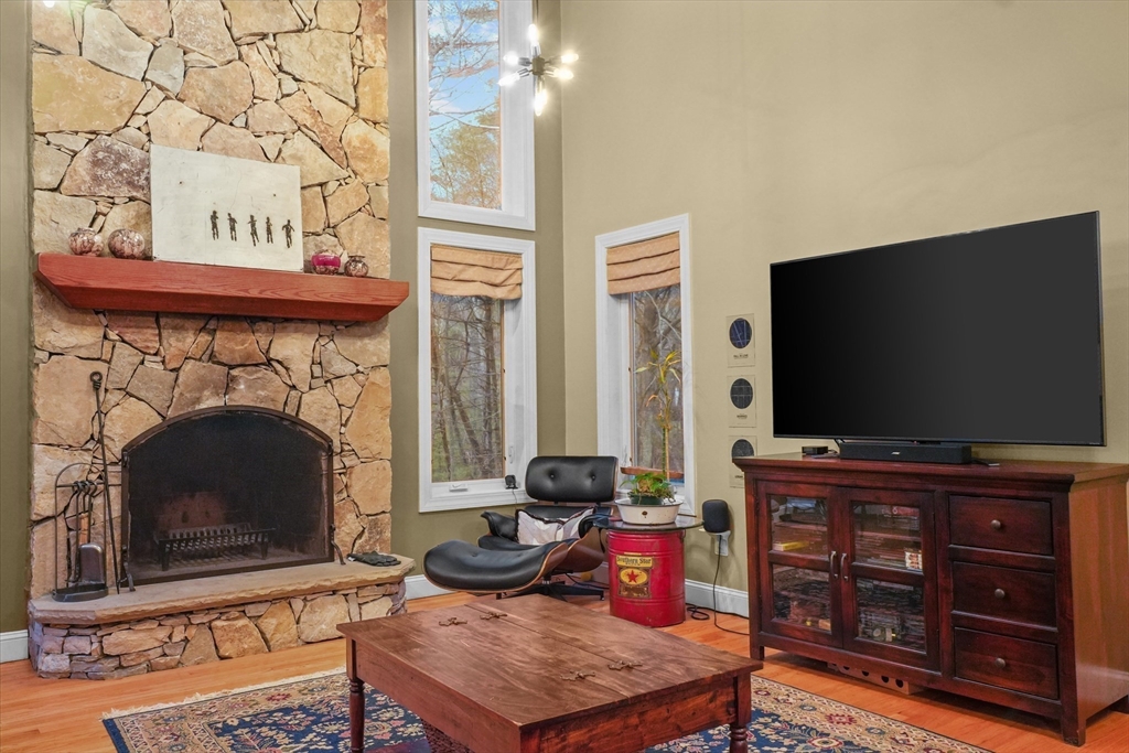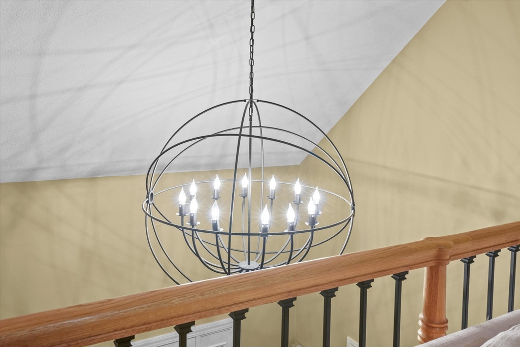 Located in a highly desirable E. Boxford cul-de-sac neighborhood, this 4BR, 2.5BA Cape offers 4,174 sq ft of beautifully designed living space on 2 private acres. A dramatic two-story foyer with cathedral ceiling and large closet leads to the open floor plan featuring an eat-in kitchen with granite counters, center island & stainless appliances. The stunning family room showcases a vaulted, beamed ceiling, indoor balcony overlook & floor-to-ceiling stone fireplace that anchors the space. Enjoy the first-floor primary bedroom with 2 walk-in closets. The exceptional lower level includes custom woodwork, a media area, game room & access to outdoor spaces. Enjoy a composite deck off the kitchen plus a covered lower-level patio ideal for year-round relaxation and entertaining. Updates include remodeled bathrooms (2020), stunning overhead lighting, roof (2019), HVAC (2023) & whole-house generator. Built in 1997 and meticulously maintained, this home blends comfort, style, and generous space.