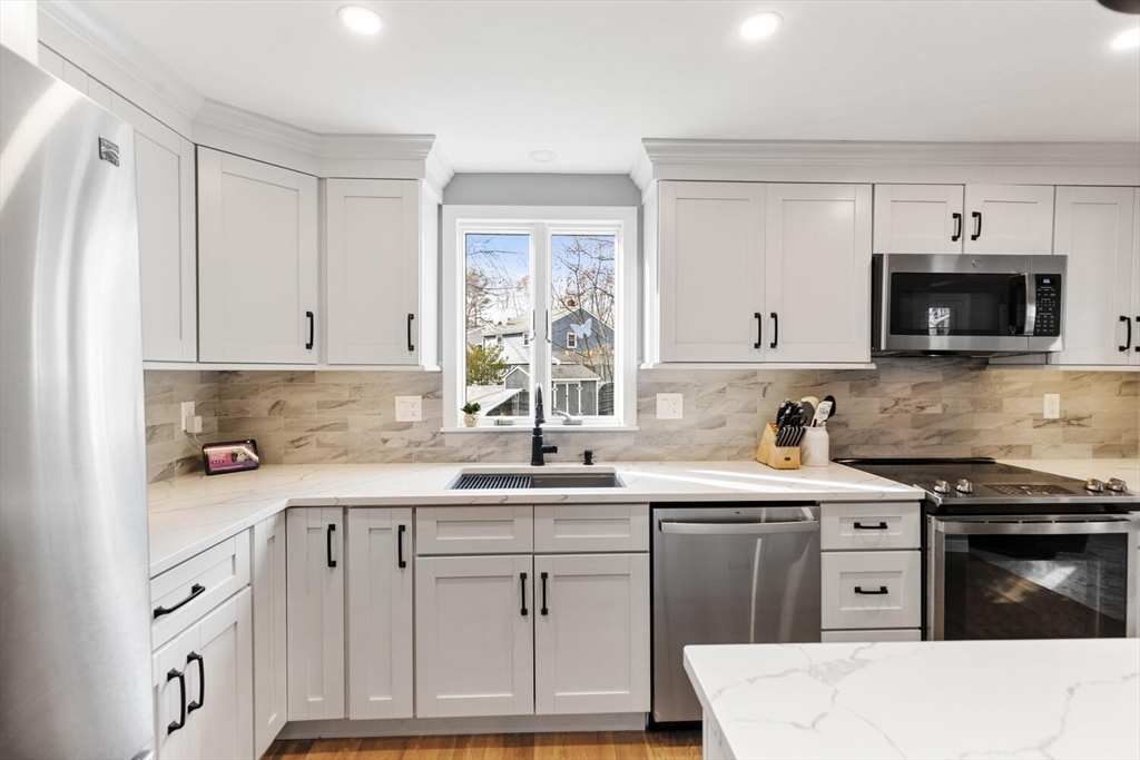 Welcome to 19 Dustin Young Lane — an impeccably maintained and thoughtfully expanded Cape featuring 4 bedrooms and 2 full bathrooms. At its center is a stunning renovated kitchen that flows effortlessly into the dining room, creating the perfect setting for everyday living and entertaining. A charming living room offers a warm spot to gather, while the sun-filled family room overlooks the expansive backyard, ideal for quiet relaxation or lively get-togethers. The first floor also includes a convenient bedroom and full bath. Upstairs, three additional bedrooms and another full bathroom provide comfort and flexibility for modern lifestyles. The lower level offers two bonus spaces, perfect for a gym, playroom, or creative retreat. Set on a desirable corner lot with an attached (heated!) two-car garage and exciting expansion potential, this home delivers charm, space, and style in a sought-after neighborhood.