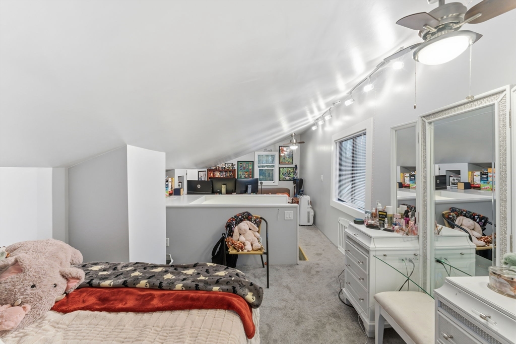 RARE FIND! Updated 2 BED, 1 BATH single-family home featuring a comfortable open-concept layout. The modern kitchen includes stainless steel appliances, slow-close cabinets, and recessed lighting. The kitchen opens directly to the living and dining areas with engineered bamboo flooring. The large main bedroom offers vaulted ceilings, plenty of sunlight, double closet, and is located off the kitchen for easy first-floor living. A spacious full bath includes a jacuzzi tub, stand-up shower, and accent lighting. First-floor laundry in front entryway adds extra convenience. Upstairs, the loft provides the second bedroom along with a versatile bonus space perfect for an office or hangout area. A slider off the dining room leads to a covered porch. Large back deck overlooks a flat backyard ideal for entertaining, grilling, and yard games. Amazing opportunity for first-time buyers or downsizers looking for move-in-ready comfort. Don't miss out on this one!