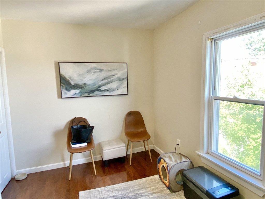 2 BEDROOM APT AVAILABLE Feb 1! Nicely renovated and roomy 2 bed, 2 bath two-floor apartment with deck and yard space. First floor features sunny living room, bedroom, full bath w/ tub, in-unit laundry area with W/D hookups, and updated kitchen with plenty of counter space, dishwasher, microwave and gas stove. Top floor features primary bedroom with attached full bath and walk-in closet/bonus space. Hardwood floors throughout the apartment and many closets and storage areas. This apartment is on the top floors of a 3-family home. No parking is included with this apartment (street parking only). Conveniently located near bus routes, restaurants and shops, and about 1 mile to Malden Center and Oak Grove T stops. Electric heat. Tenant pays electric and gas. Cats/small dogs allowed with pet fee of $45/month. Required move-in payments: first month’s rent, last month’s rent & security deposit ($2000).