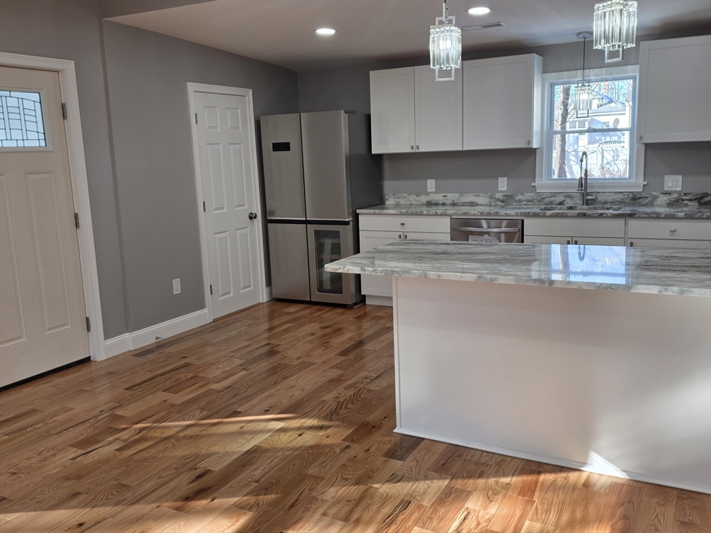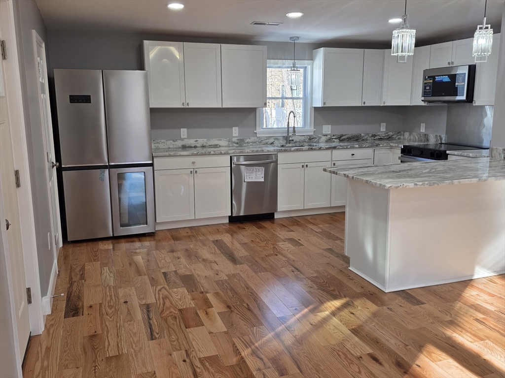 GORGEOUS says it best with this fully renovated 4 Bedroom home located in a quiet Leominster neighborhood with a large backyard! Beautiful Open concept kitchen is ready for your entertaining to come with all new stainless full appliances& side wine cooler! Fantasy Quartzite countertops with breakfast bar & Diamond white cabinets! Large Sunny living room! Full modern bath with blue tooth speaker vent! Two 1st level BR! 2 large BR on 2nd level with 1/2 bathroom! Bathrooms have smart mirrors NEW: Premium ceramic bath floors! Red Oak & Bamboo hardwood flooring!Roof, siding & windows! Recessed lighting & electric throughout!Side entry porch/mudroom. Huge basement provides opportunity to add even more space! TOO MUCH TO LIST:SEE ATTACHED SCOPE OF WORK! Lead compliant! Step out onto your front deck for you am coffee! The backyard is ready for your outdoor fun & a warming fire pit! Bring in the NEW Year with your NEW home! Close to major highways, shopping & The "T".