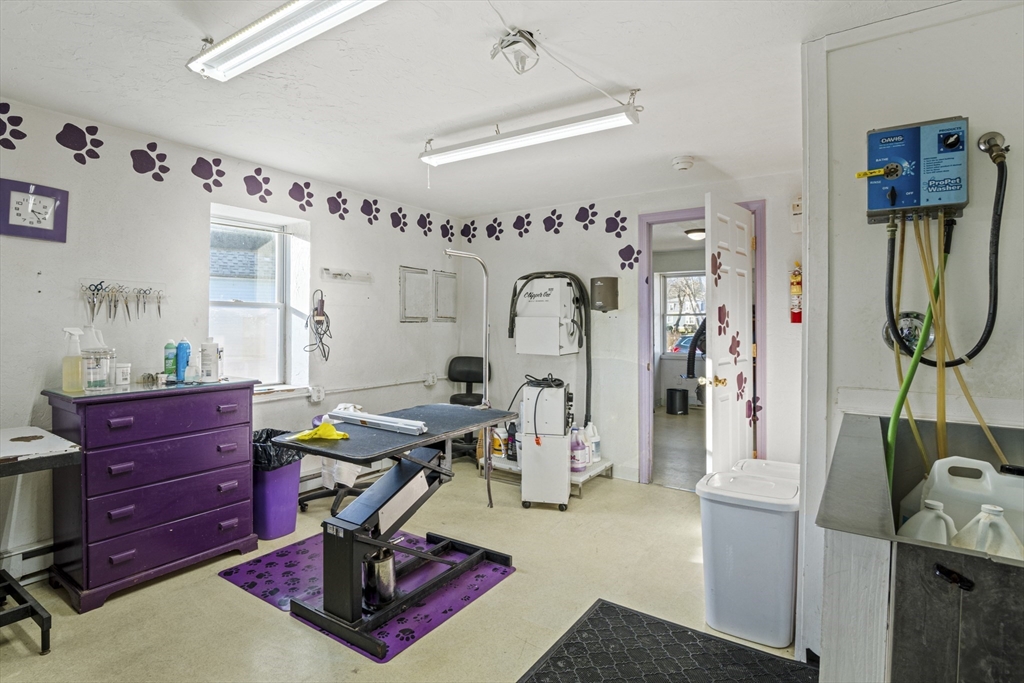 Unlock the potential of this versatile property, offering the best of single-level living and commercial revenue. Located conveniently close to all of Oxford's local amenities and major routes, this is a prime investment. The residential side features a bright and sunny living room. The kitchen provides ample cabinet storage, leading to two comfortable bedrooms, each with a closet, and a full bathroom with a tub/shower. The dedicated commercial side is ready for business, currently configured with a functional workspace, including a dog wash station and a convenient half bathroom. Outside, the back yard is fully fenced in, offering excellent utility and potential. Whether you're looking to run a business from home, generate rental income, or launch a dedicated commercial venture, this is an opportunity you can't afford to miss! *Brand new septic installed 2025 *Easy access to Rt 395, 290, 90 146, & 20! *Schedule your showing today!