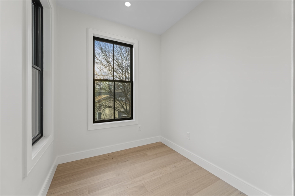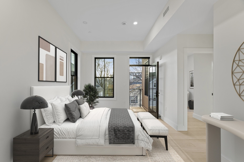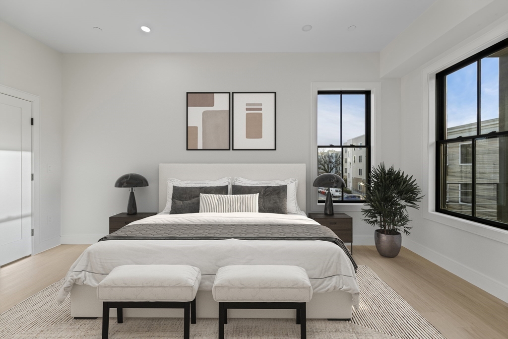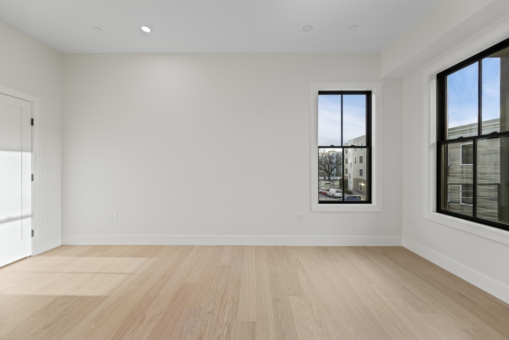 Start off 2026 in your beautiful new home! Built in late 2024, this unit is a meticulously designed 2 Bed+Office/2 Bath, 1080 Sq ft with TWO Private Decks + Assigned GARAGE Parking, steps from Washington Village, South Boston's Waterfront, and multiple public transportation options! Large open-concept living with soaring ceilings and oversized windows throughout. Kitchen features a quartz island with seating for 3-4, slab cabinetry and Fisher/Paykel appliance package. Kitchen opens to living/dining area with private deck off front of unit, perfect for entertaining. Large Primary Suite with private office, large closet + en suite bath, double vanity + oversized tiled glass shower and additional private deck. Large guest bedroom + guest bath. Hardwood throughout. In-unit washer/dryer and central AC. TONS of natural light. Don't miss out!