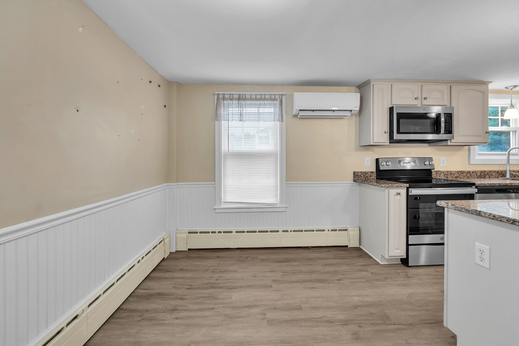 Welcome to this charming antique Cape, beautifully updated while preserving its timeless character. Step inside to find gleaming hardwood floors throughout and a bright, inviting layout that flows effortlessly from room to room. The modern kitchen features stainless steel Energy Star appliances, and granite counter tops blending style and efficiency. This move-in-ready home offers three bedrooms and two full baths, along with new mini-splits and solar panels that keep electric costs at an absolute minimum—often next to nothing. Enjoy a flat, usable yard perfect for relaxation or play, complete with a new insulated and heated shed ideal for hobbies, storage, or a workshop. Nestled in a quiet, peaceful neighborhood at a dead end, this property delivers comfort, convenience, and classic New England charm. A must-see!