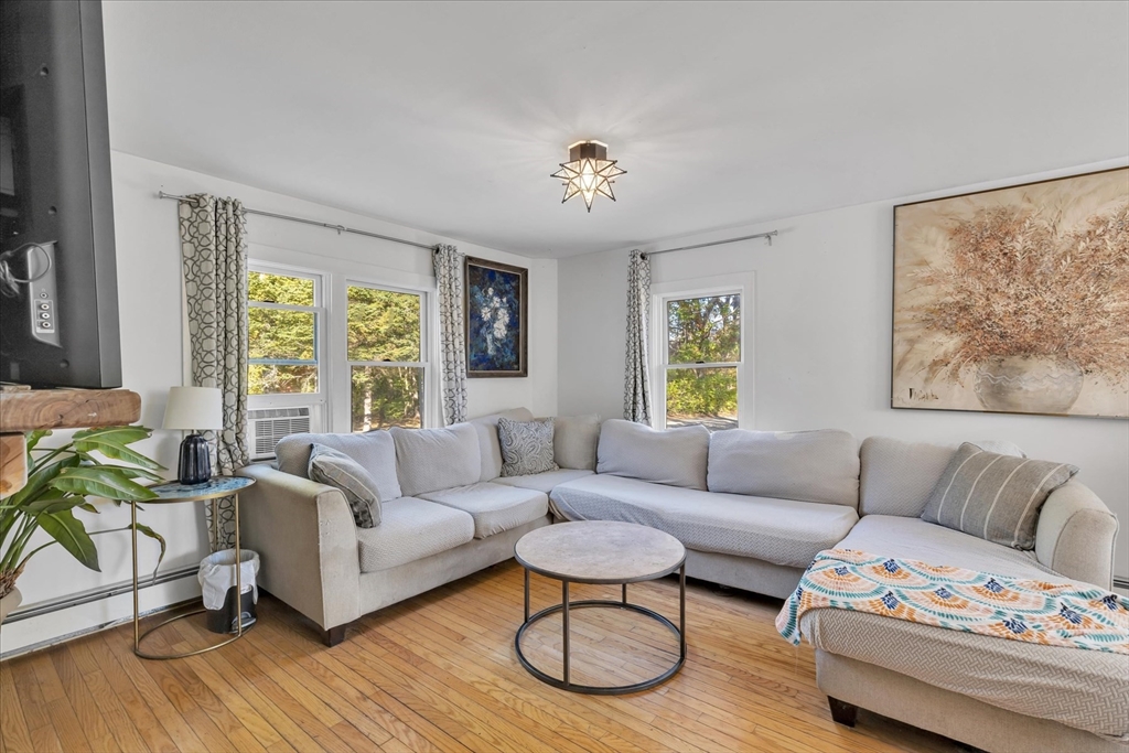 Discover a classic Cape Cod retreat set on a peaceful, wooded lot offering exceptional privacy and room to spread out. This warm and welcoming home features sunny living spaces, hardwood floors, charming built-ins, and an inviting enclosed porch perfect for morning coffee. The kitchen offers great natural light and functional workspace, flowing into a comfortable dining and living area anchored by a cozy fireplace. Upstairs, two character-filled bedrooms with exposed beams create a restful getaway. Outside, the property includes multiple outbuildings ideal for storage, hobbies, or future creative use. Surrounded by mature trees and nature trails, this property offers a rare blend of serenity and convenience—just minutes to ponds, beaches, and local amenities. A wonderful opportunity to make your Cape Cod dream your own.