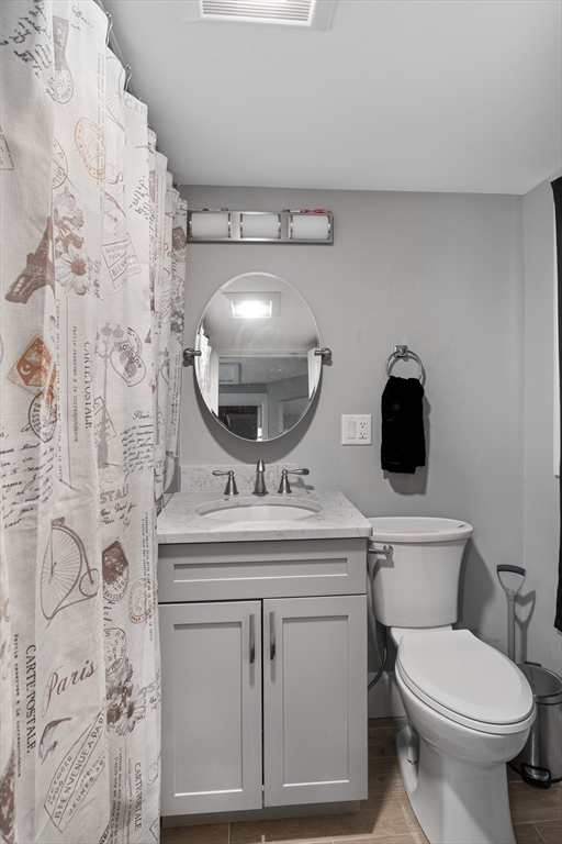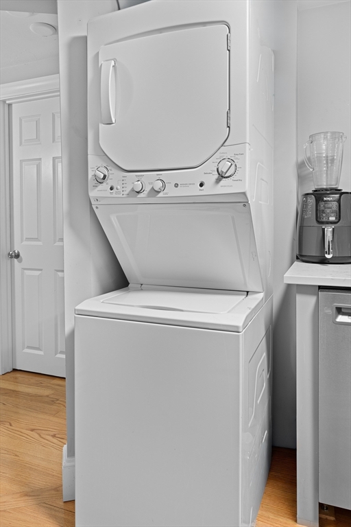 Welcome to this inviting 2-bedroom Woburn home, a 2nd-floor unit offering an open floor plan that blends classic charm with modern updates. The renovated kitchen features sleek grey cabinetry, granite countertops, and stainless steel appliances, flowing into a bright living area with hardwood floors. A rear mudroom provides convenient access to the spacious fenced backyard. The loft-style primary bedroom showcases warm wood-plank vaulted ceilings and striking architectural detail. Both bedrooms include closets, and a generous office adds flexible living space. An updated tiled bathroom with a tub/shower completes the interior. Additional highlights include in-unit washer/dryer and off-street parking. Convenient shopping and dining at Woburn Village are just minutes away, with easy access to major highways and public transit for effortless commuting. Close to downtown Woburn and walking distance to Horn Pond’s scenic trails—this move-in-ready home is a must-see!