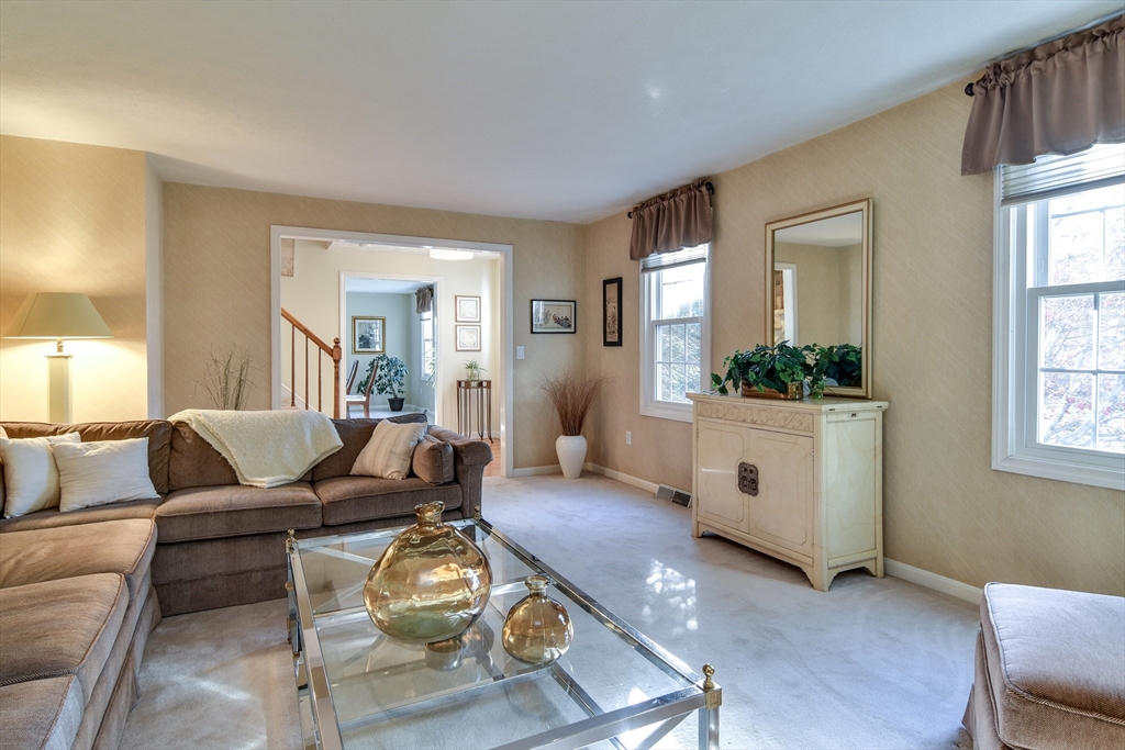 Nestled at the end of a quiet cul-de-sac, 7 Gibbs Valley Path is everything you hope for in a New England colonial - warm, inviting, beautifully cared for and filled with natural light. The living and dining rooms flow graciously together, perfect for holidays and everyday moments alike. The sunny kitchen offers hardwood floors, granite counters, charming dining spot and a bay window that frames tranquil views of the yard. A comfortable family room features sliders to the deck and a cozy wood fireplace that makes chilly nights melt away. The two-car garage keeps life easy and organized. Upstairs, the front-to-back primary suite is spacious and serene complete w/ a double-vanity bath and a relaxing Jacuzzi tub, plus three additional bedrooms and a full granite tile bath. The LL walk-out extends your living area w/ a fantastic game room and playroom with direct access to a covered patio where summer evenings are meant to be enjoyed. A picture-perfect home and picture perfect location.