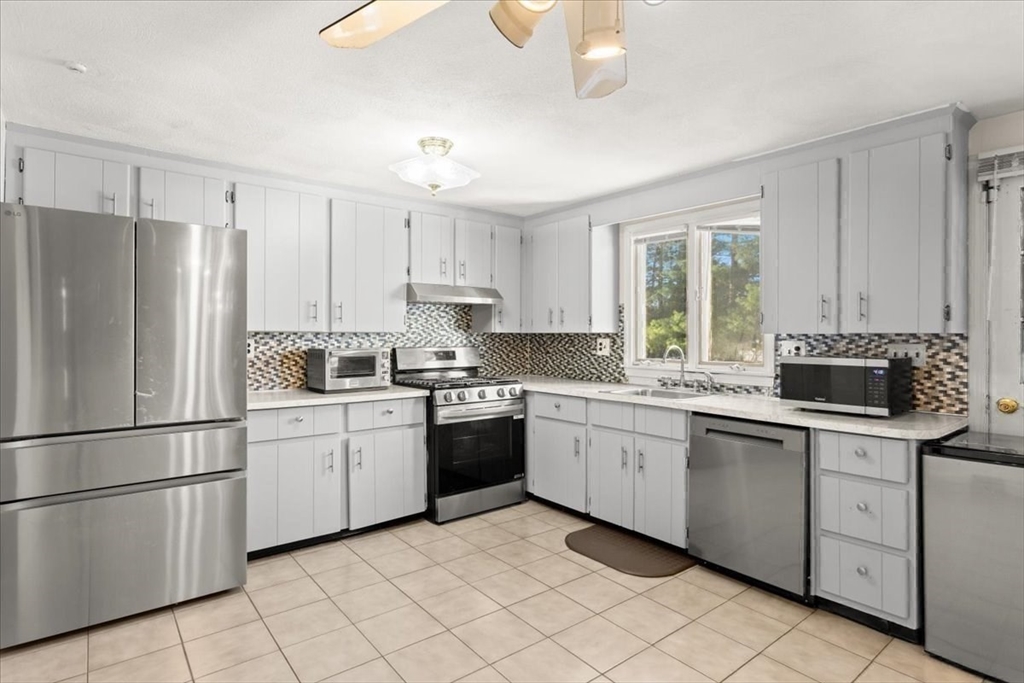 Expanded 5-bedroom, 2.5 bath raised ranch on a quiet side street, thoughtfully upgraded and perfect for extended or multi-generational living. The main level offers a bright living room, open dining area, and updated kitchen with brand-new stainless steel appliances and high-quality hardwood floors. An enclosed porch adds a flexible year-round space for relaxing, a playroom, or a home office. Fully finished lower level includes 2 additional bedrooms, a new full bath, a spacious family room, a laundry area, and direct access to the 4-car garage with new doors. The majority of the work is done and already in place for a second kitchen, making the nearly finished in-law/ADU setup ideal for guests, extended family, or future rental potential. The buyer would need to complete the final steps. Set on a well-kept lot close to schools, shopping, and major routes, 30 Hemlock delivers rare space, versatility, and value in sought-after Randolph. First showing at open house Sat Dec 6, 10a-12noon.