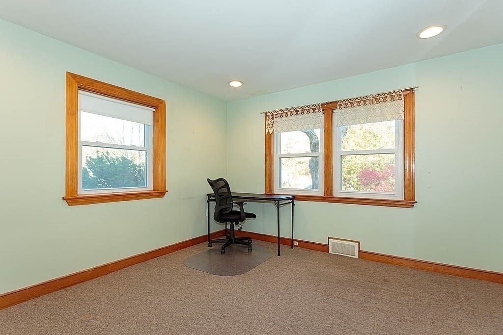 Step into this sparkling clean, spacious full-dormered Cape perfectly set on a beautiful ½-acre lot. Thoughtfully updated, this home features a newer furnace, windows, 100-amp electrical panel, and hot water heater. Enjoy hardwood floors throughout—even under the carpet, ready to be refinished to reveal their natural beauty. The modern kitchen boasts a large center island with quartz countertops and opens to a convenient mudroom. The open-concept living and dining room provide plenty of space for entertaining and everyday living, while a first-floor bedroom or home office adds flexibility and convenience. Upstairs, discover two king-sized bedrooms with generous closet space. With central air conditioning and blown-in insulation, you’ll enjoy comfort year-round. Step outside to your backyard oasis, featuring three decks, a sunroom, a relaxing hot tub, a fishpond, and a sprawling yard. Bonus: Lawn mower, snow blower, and garden tools included!