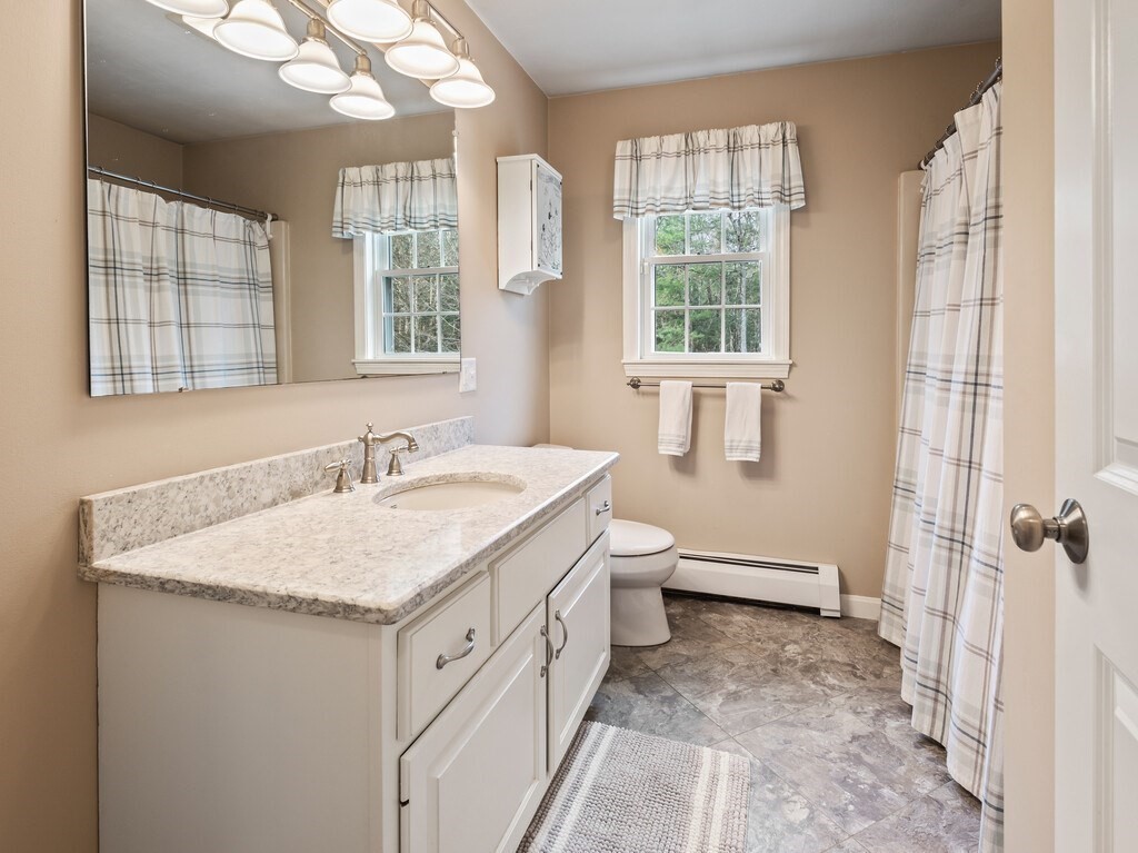 Discover the charm of this incredible home a short distance away from scenic walking trails. This property features, a modern kitchen with quartz countertops, first floor bedroom or formal dining room and a cozy living room with a fireplace. The bathrooms have updated flooring with a quartz countertop on 1st floor and marble countertops on the 2nd floor including a jetted tub. The roof was replaced in 2016, also the oversized garage plus the second floor addition was added in 2013. A mini split paired with a Buderus furnace for efficient heating and cooling with Solar Panels that are OWNED. The partially finished basement offers extra living space with ample storage. The surrounding 2+ acres along with the pool and deck provide a tranquil environment to enjoy.